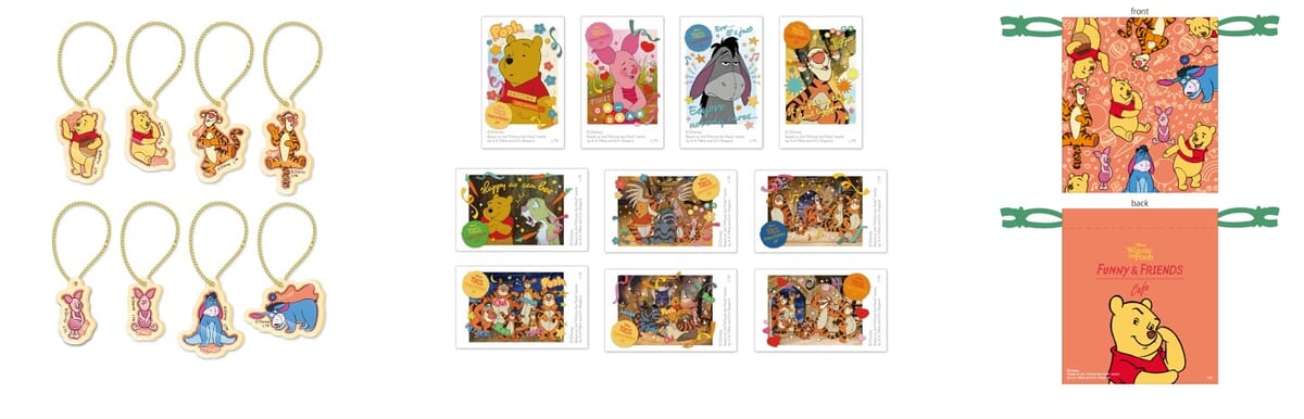 「くまのプーさん」たちの”ファニー”なお顔が楽しいアクリルキーホルダーやステッカー、巾着。
