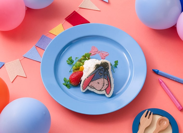 フランボワーズのパウダーでしっぽのリボンを表現した「<イーヨー>ERR...フルーツ&パンプレート」