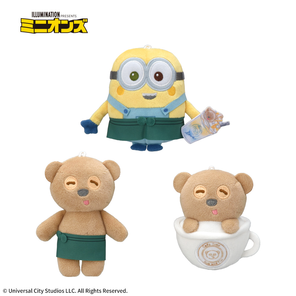 ”カフェ”をテーマにデザインされた、カフェ店員に変身した「ボブ」と「ティム」のぬいぐるみなど全3種類がラインナップされます。