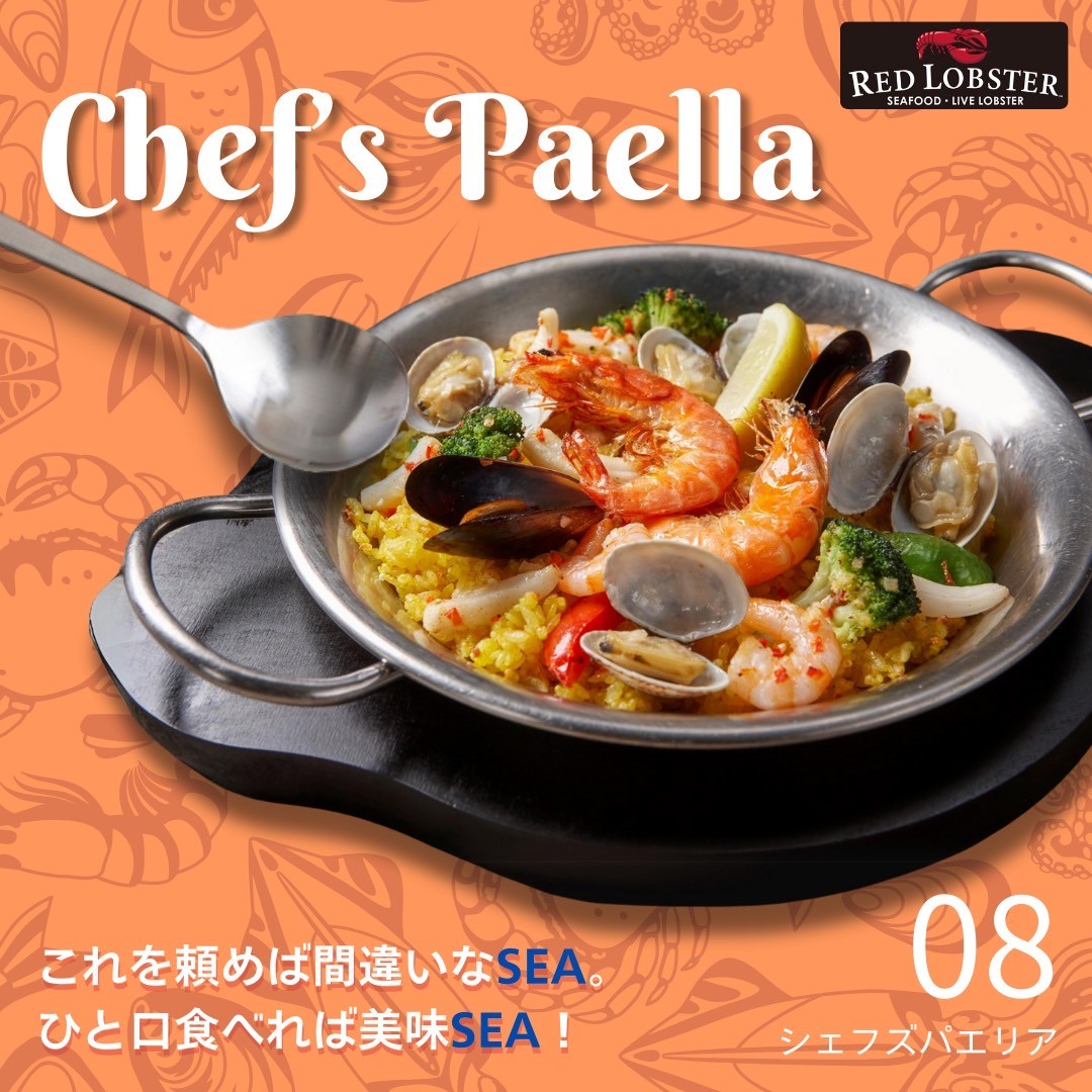 目で見て楽しい、食べておいしい、具だくさんのオリジナルメニュー「シェフズパエリア」