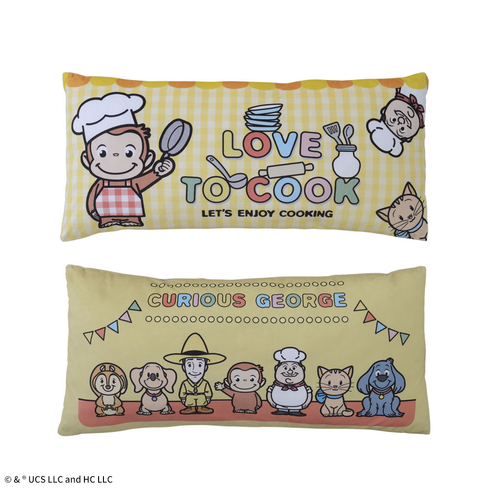 「おさるのジョージ」の世界観が楽しめる、ロングサイズの大きなクッション。