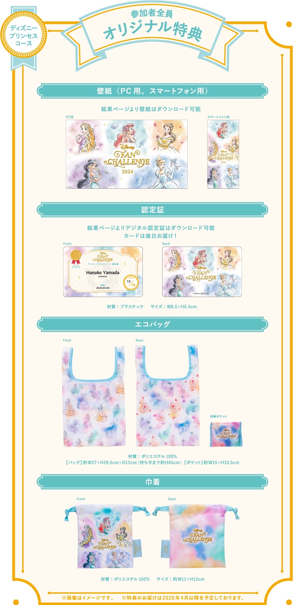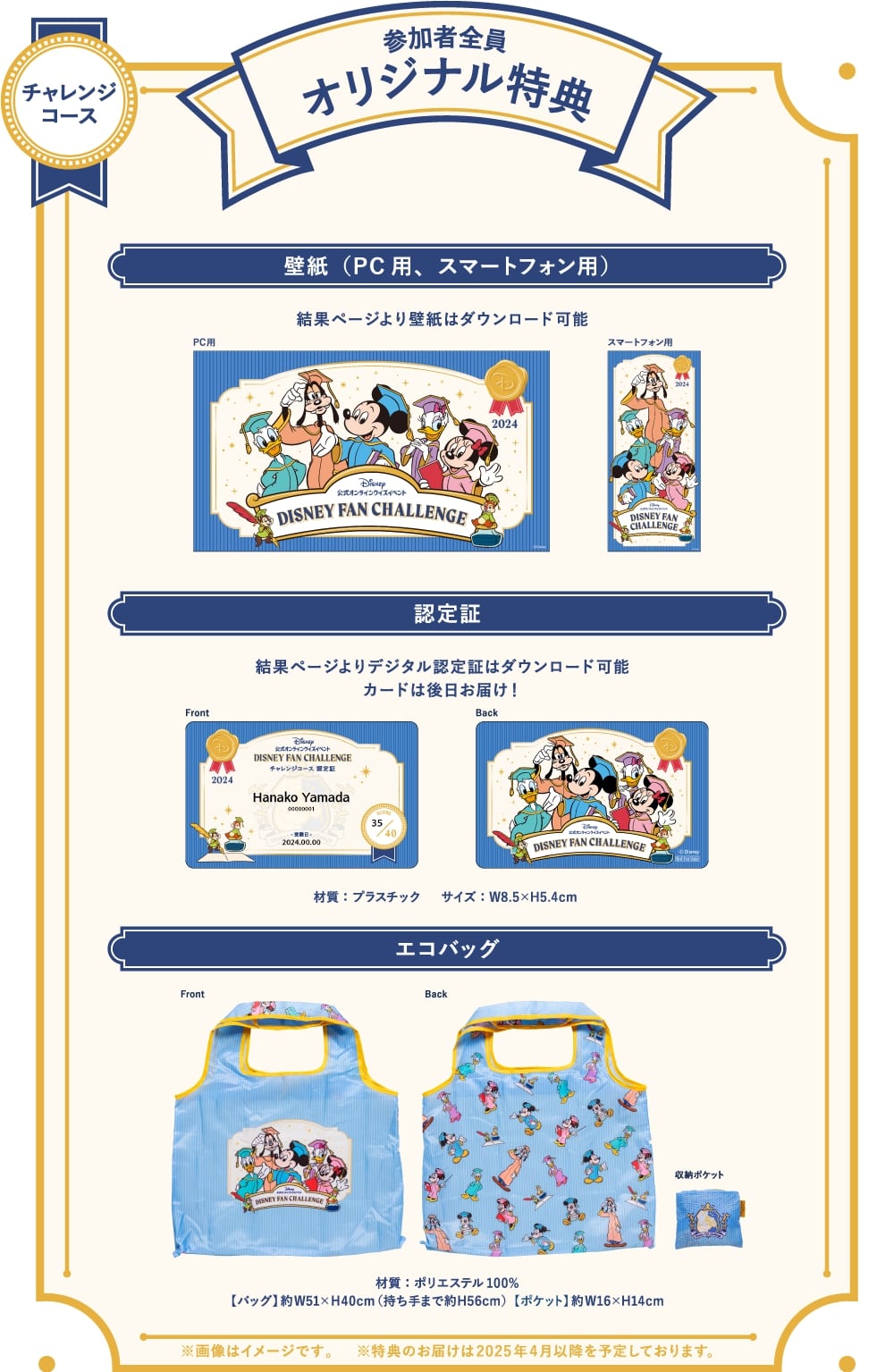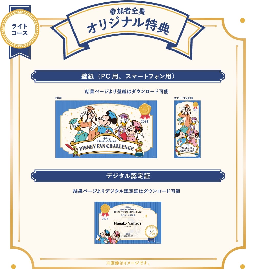 「ディズニーファン・チャレンジ 2024」の3コース全て、全員もらえるオリジナル特典つき。