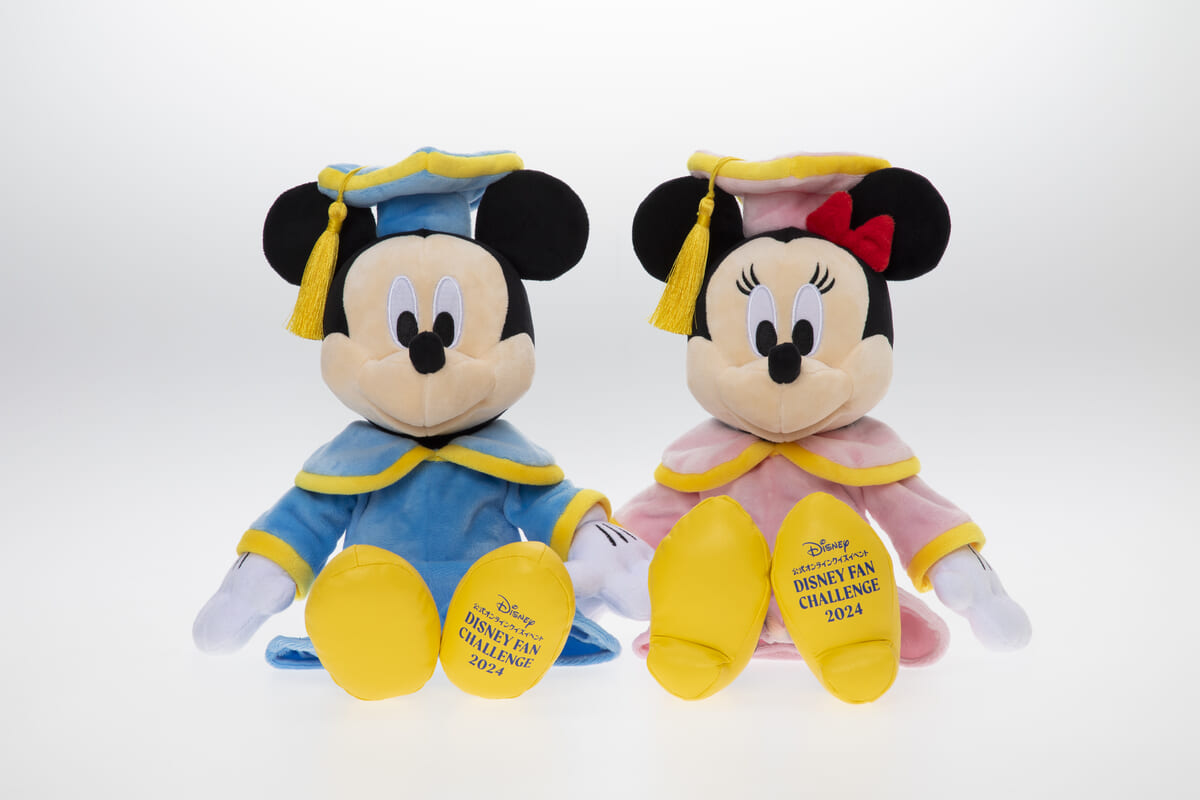 アカデミックガウン&タッセル付きハットを身に着けた「ミニーマウス」と「ミニーマウス」がセットになっています。