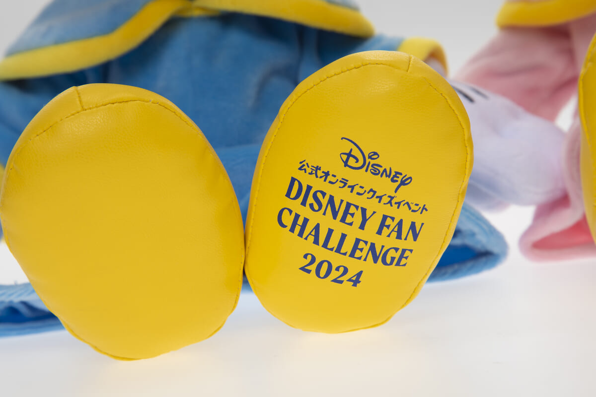 足裏にプリントされた「ディズニーファン・チャレンジ 2024」のロゴがポイント。