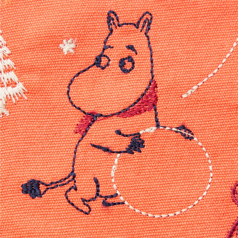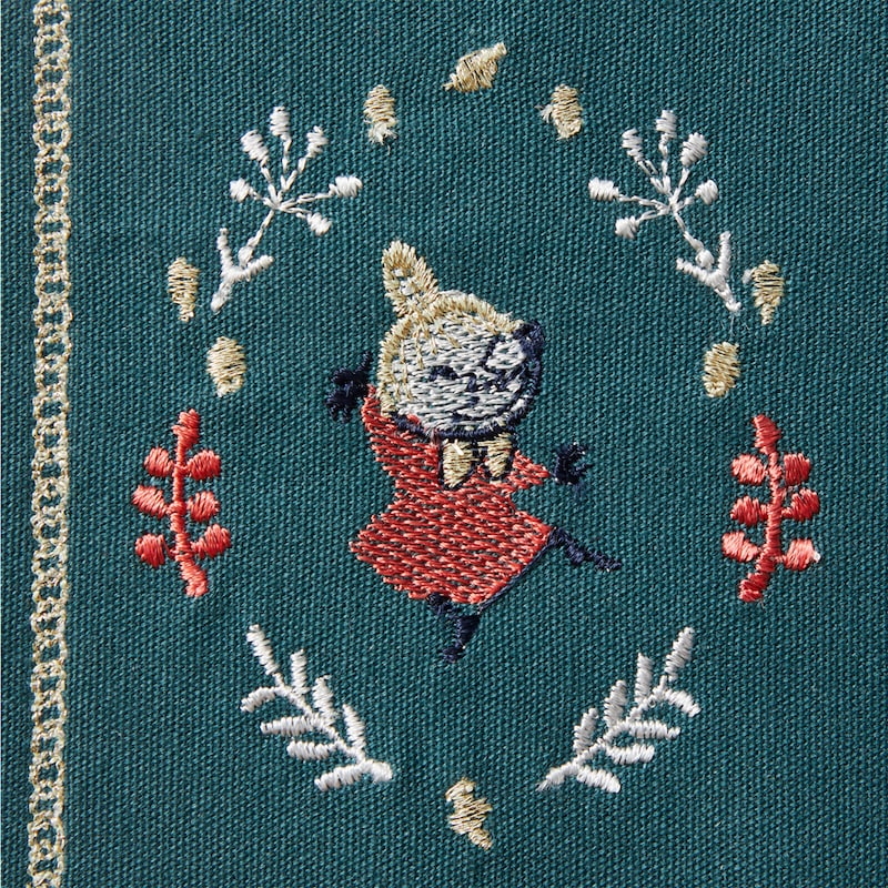 「ムーミン」たちが冬のホリデーを楽しんでいる様子を刺繍で表現。