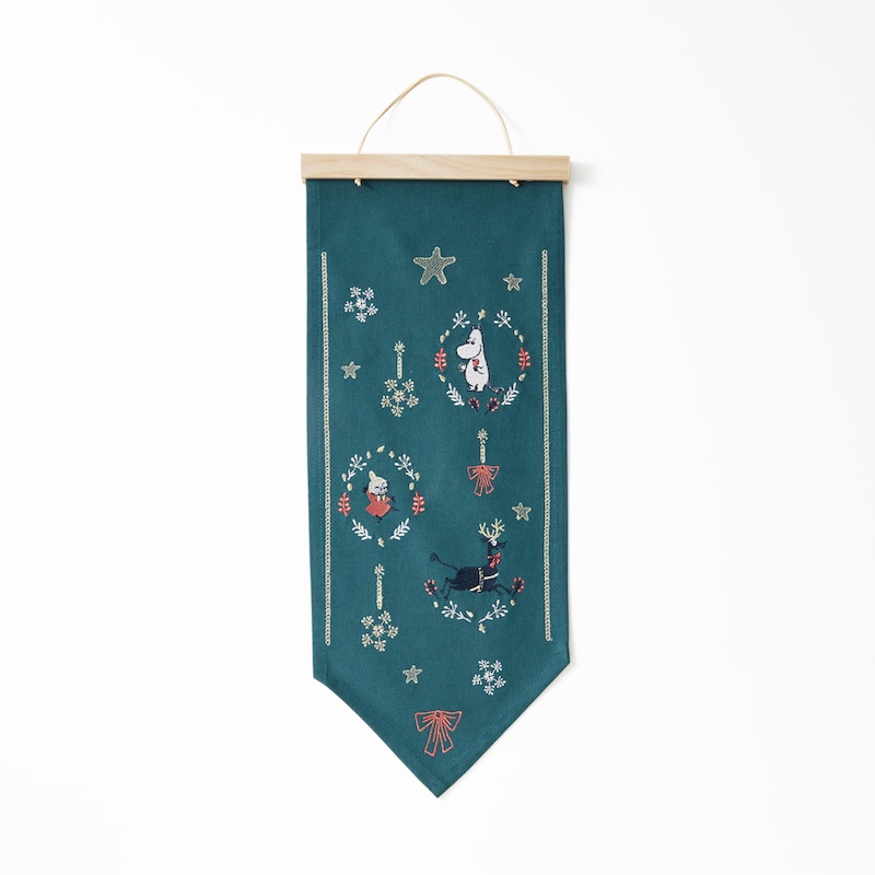 クリスマスを彩る「ムーミン」デザインのタペストリーと刺繍入り巾着。