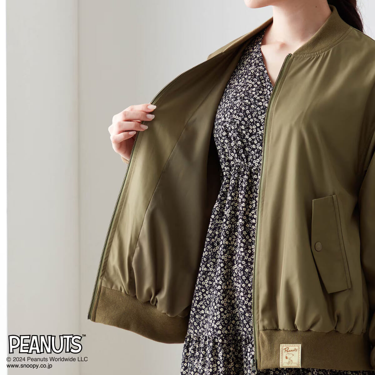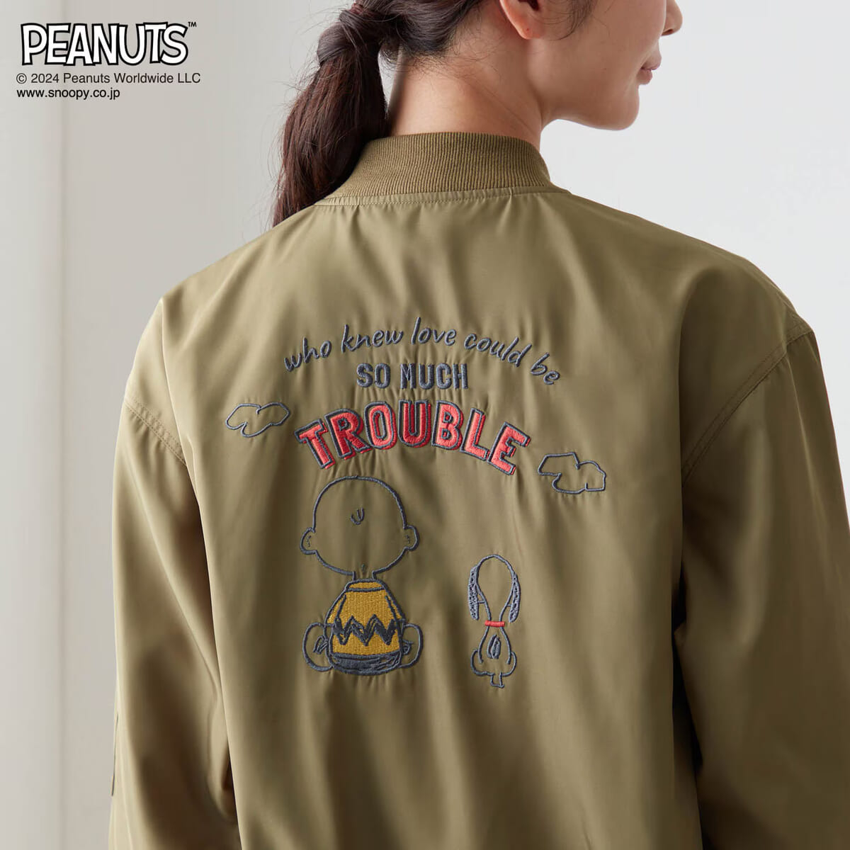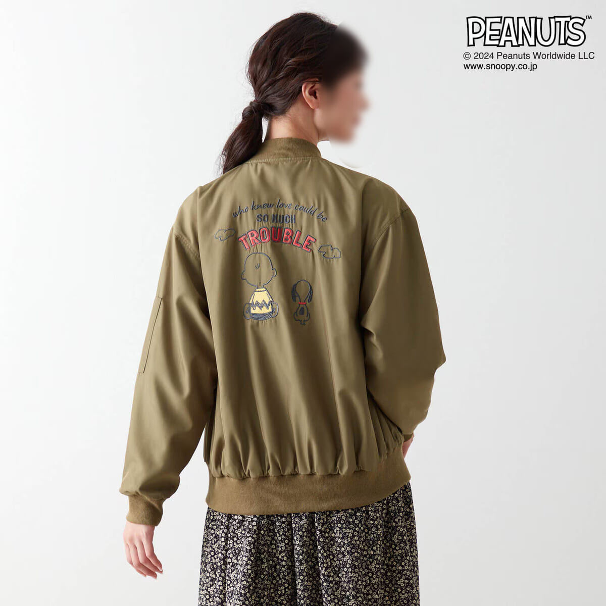 「スヌーピー」と「チャーリー・ブラウン」の刺繍が目を引くきれいめブルゾン。