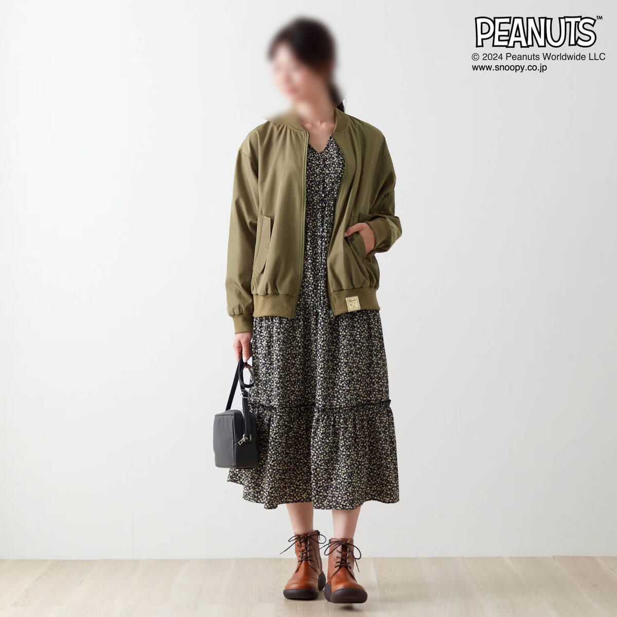 「スヌーピー」刺繍入りツイルブルゾン(着用イメージ)