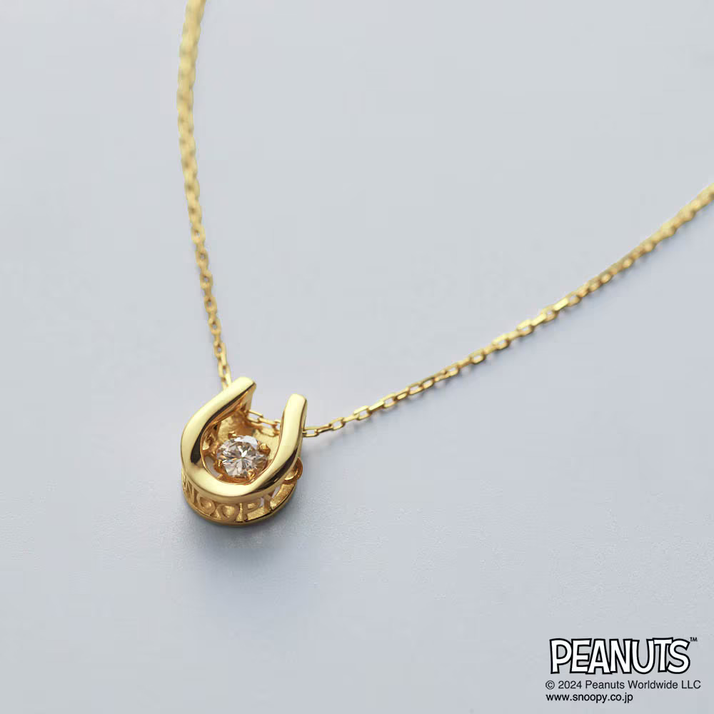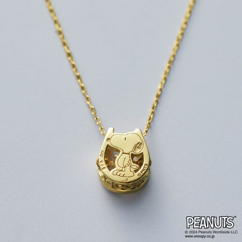 ダンシングストーンの輝きと、さりげない「スヌーピー」モチーフが愛らしい、10K素材のネックレス。