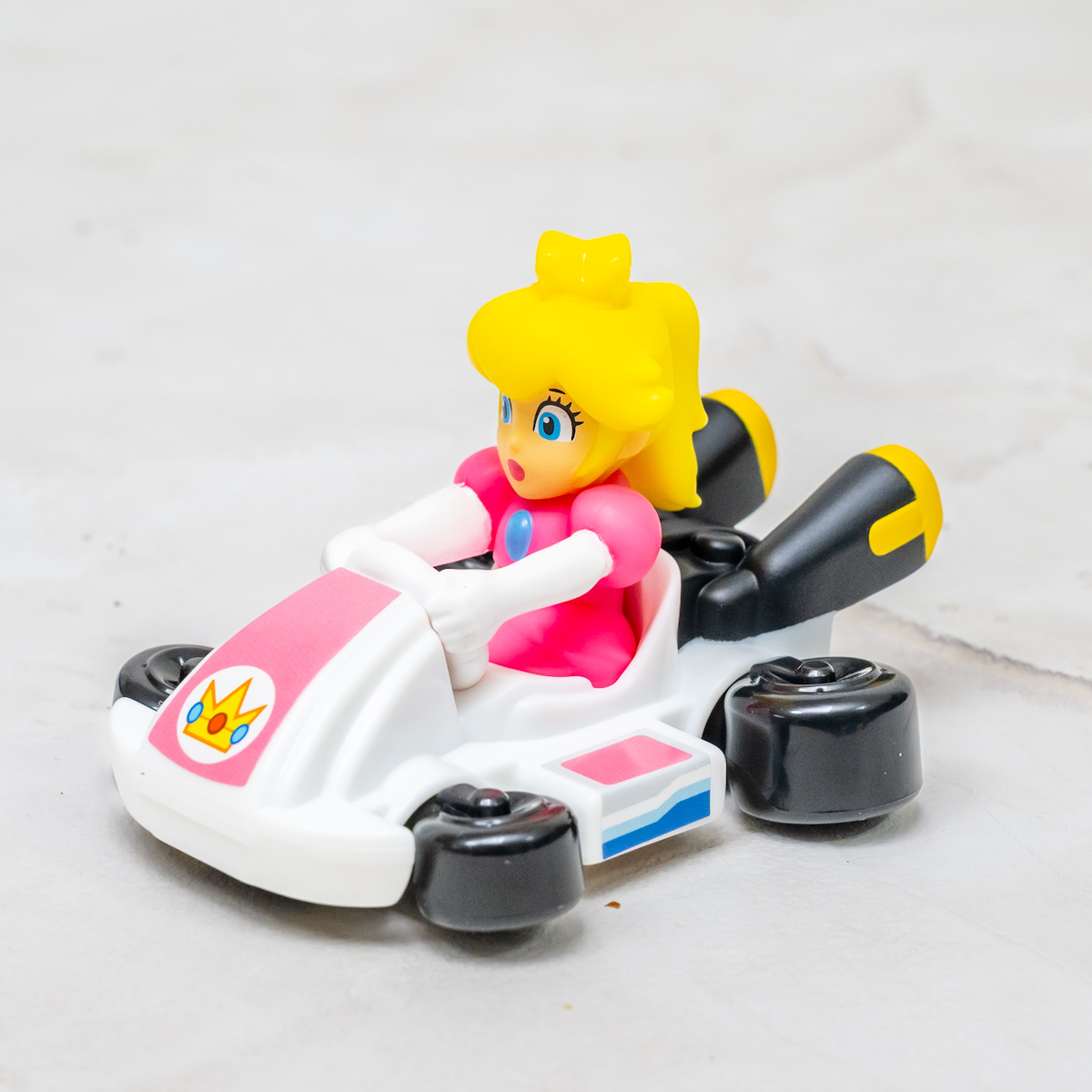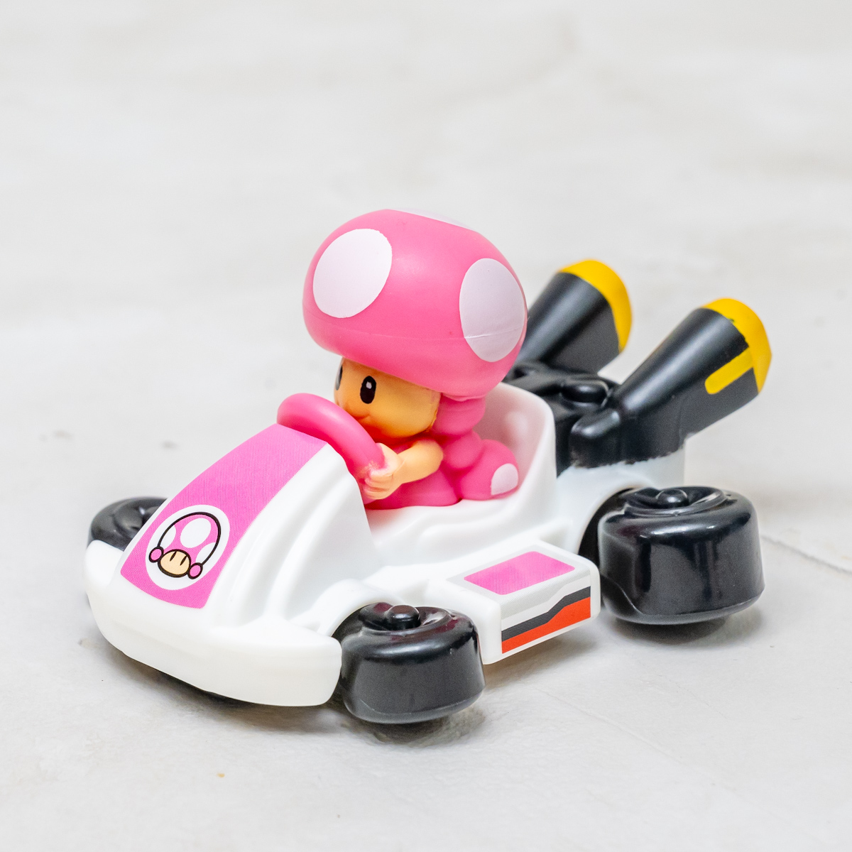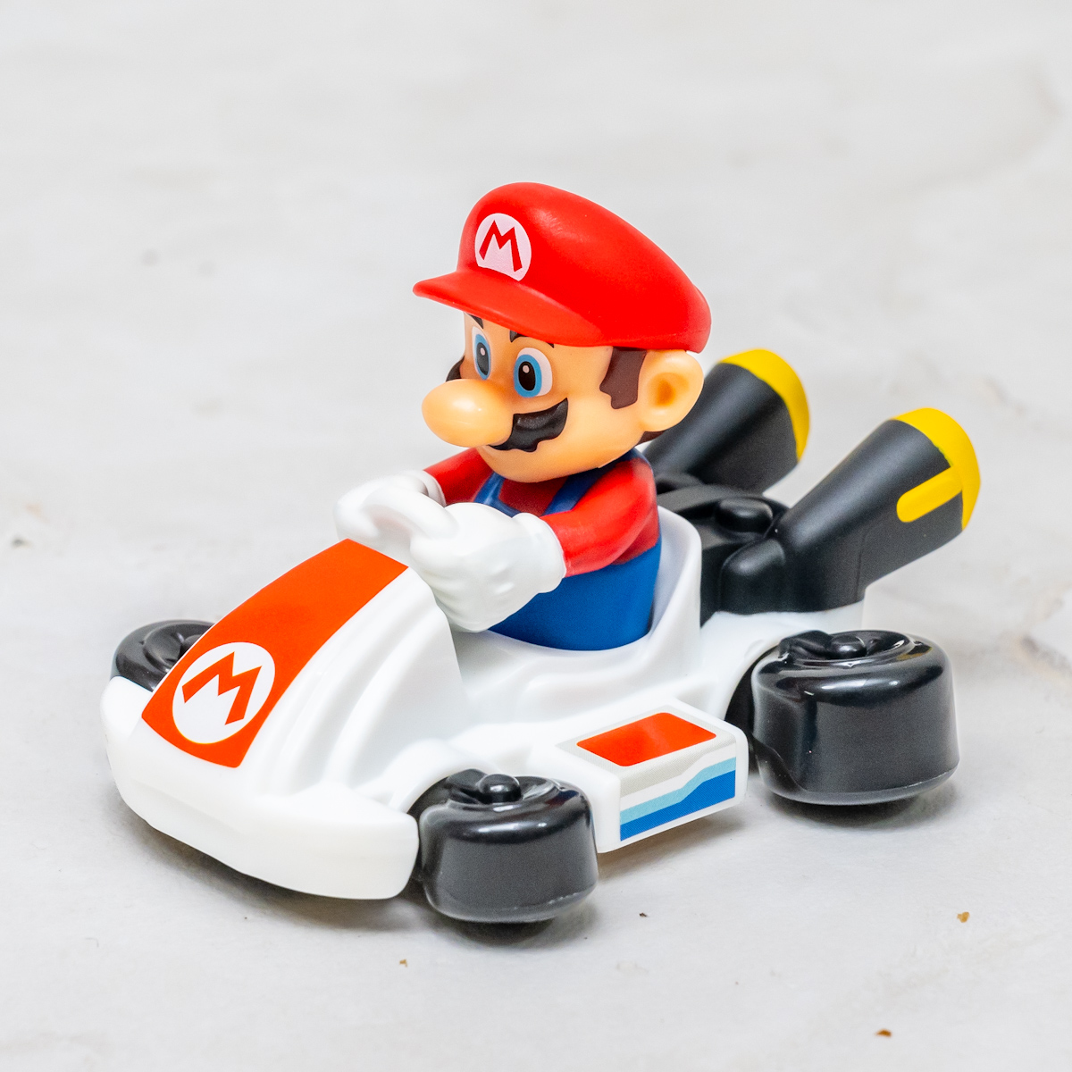 ハッピーセット「マリオカート」のおもちゃは、「マリオ」や「ルイージ」「クッパ」などのキャラクターたちが、カートに乗った姿を再現。
