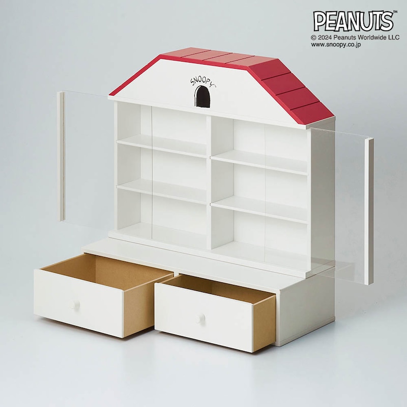 「スヌーピー」のディスプレイが楽しめるドッグハウスデザインの収納ラック。