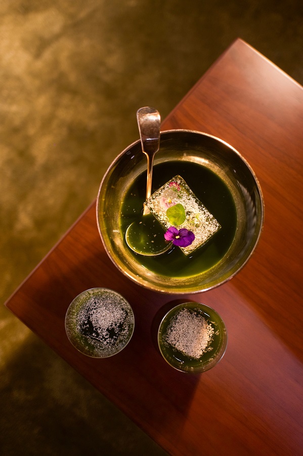 19世紀の日本で生まれたカクテル「バンブー」を組み合わせ、竹のような香りの熊笹茶とマスカットの味わいをもつカクテルに仕上げられています。