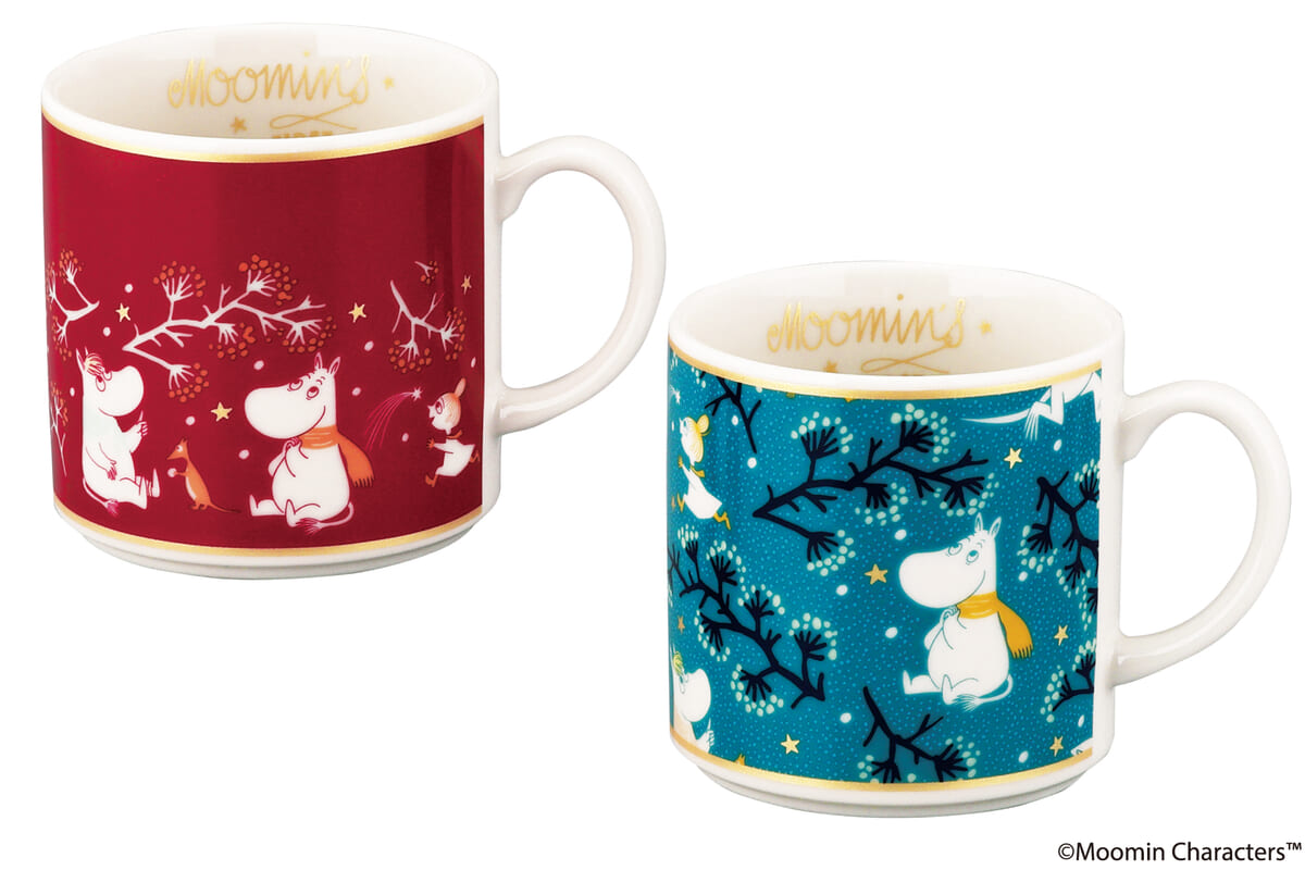 「ムーミン」たちが初めて雪を見た美しい瞬間を表現した「FIRST SNOW(ファーストスノー)」のアートが施されたマグカップ。