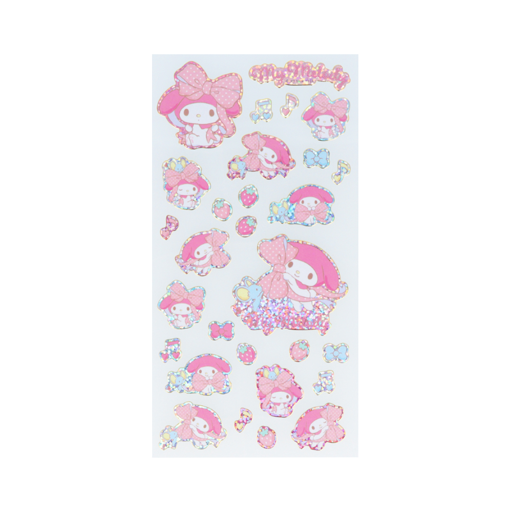 「マイメロディ」や「マイスウィートピアノ」のぬいぐるみを抱っこしたり、一緒に寝たりと、かわいい「クロミ」がたっぷりのシールです☆