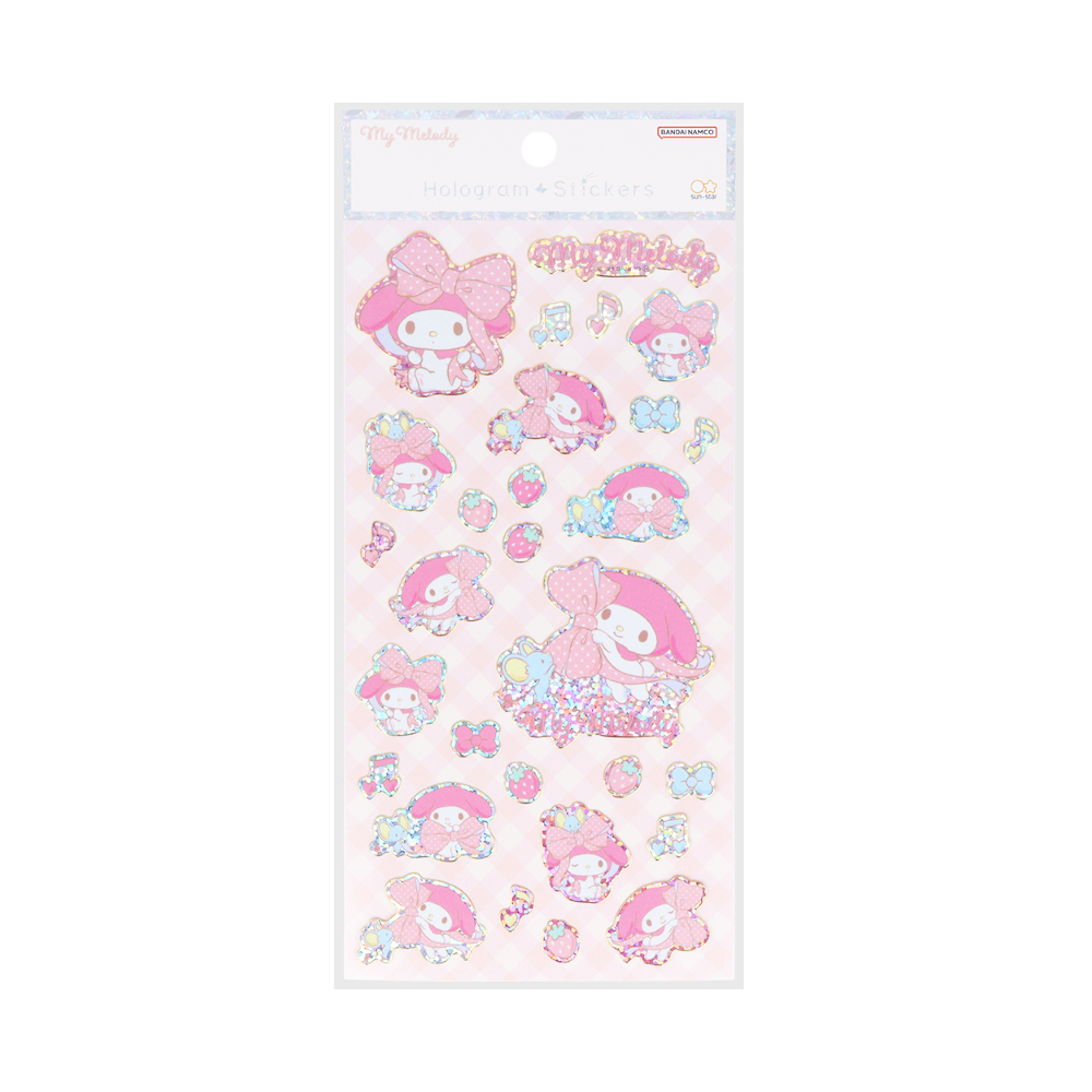 大きなリボンと戯れる、かわいすぎる「マイメロディ」のホログラムシールです!