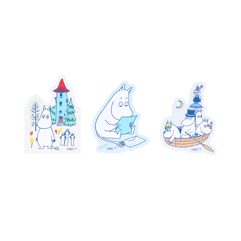 ダイカットステッカーは、「ムーミン」たちの日常を切り取ったデザインです。