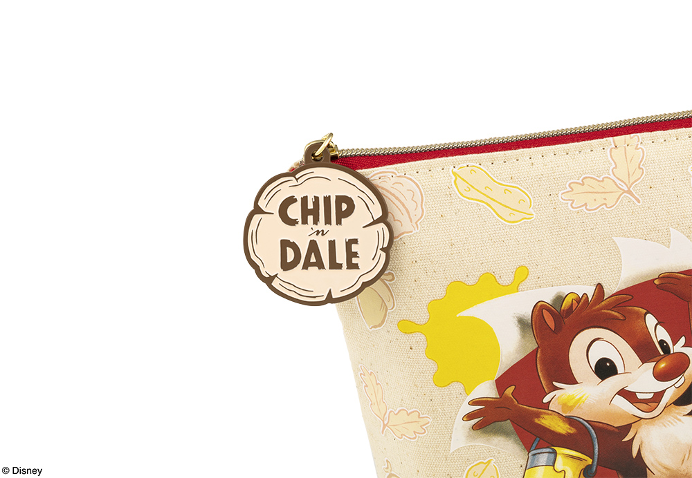 ファスナーには「チップ」と「デール」のロゴをあしらったオリジナルチャームが付いています。