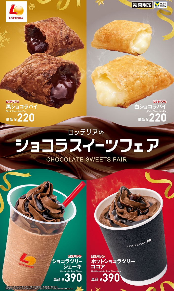 ロッテリアにて、クリスマスにぴったりなショコラづくしの新メニューが登場する「ショコラスイーツフェア」を開催。