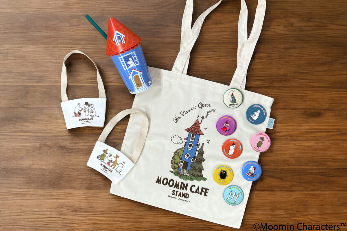ステンレスタンブラーや、トートバッグなど「ムーミンやしき」をモチーフにしたアイテムや、ドリンクカップホルダーや缶バッジといったムーミン谷の仲間たちがデザインされたアイテムなど、ムーミンカフェ スタンド限定のグッズです。