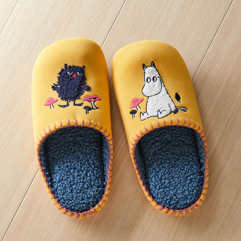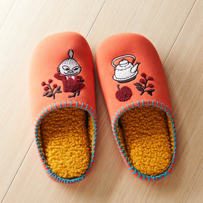 「ムーミン」と「リトルミイ」の刺繍デザインがポイントのあったかスリッパ。