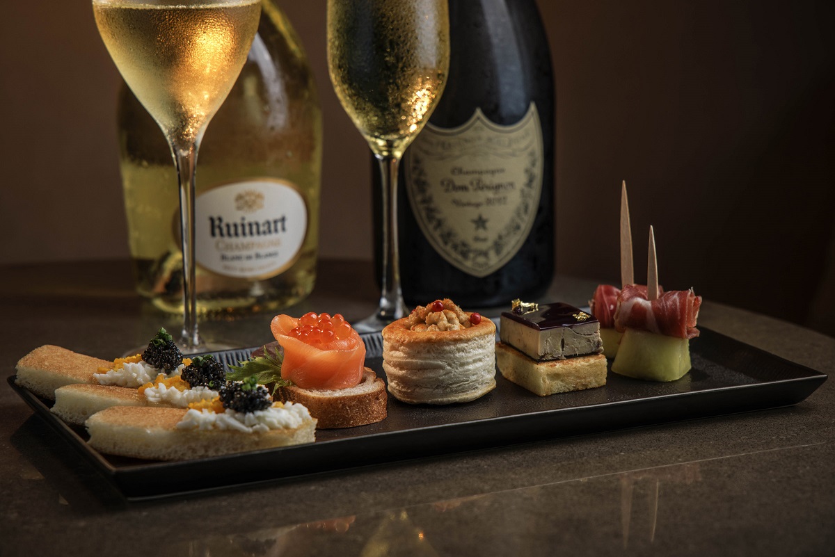 スタンダードプランは、エレガントでフルーティーな風味が特長のシャンパン「ルイナール」と、キャビア メルバトーストなどのアペタイザーを用意。