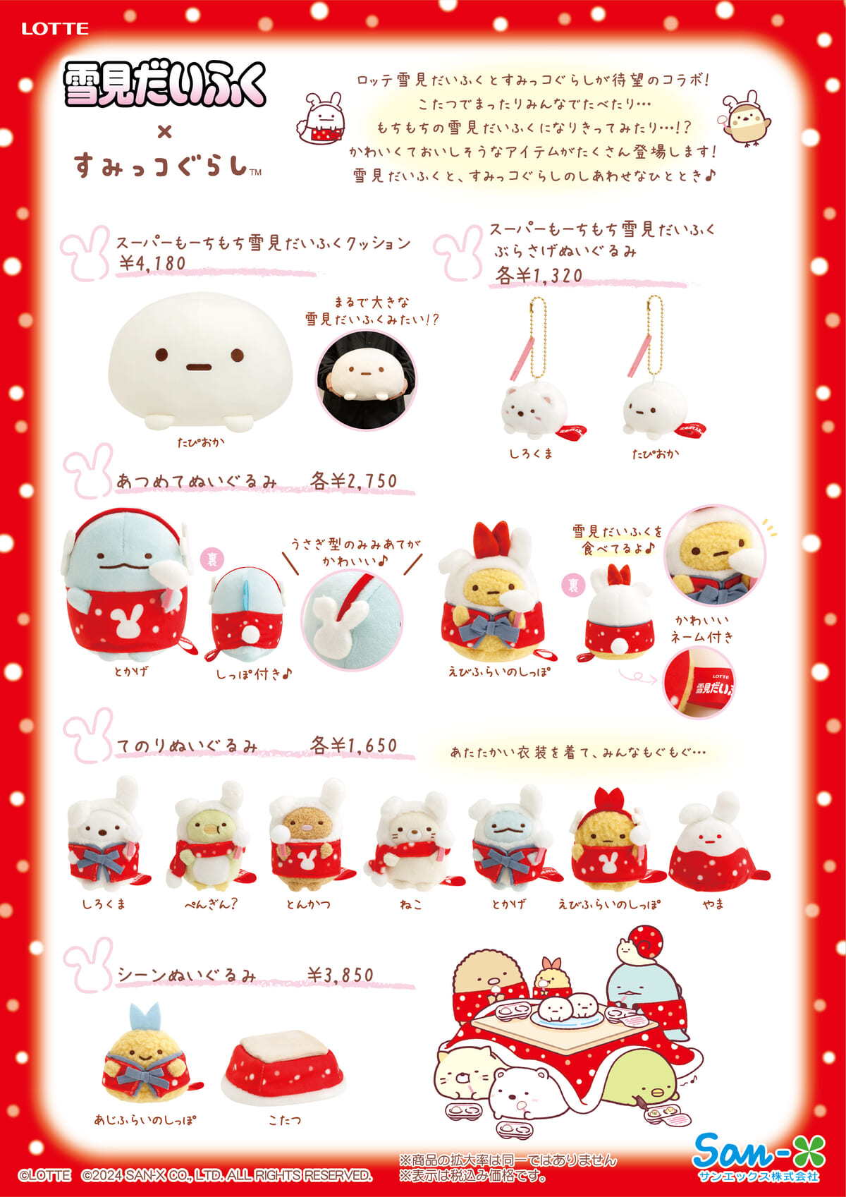 「雪見だいふく×すみっコぐらし」のコラボグッズは、2024年11月23日(土)からロフトより、2024年11月25日(月)からサンエックスネットショップより登場です。