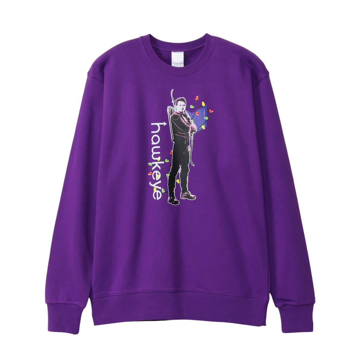 カラフルなライトをバックに腕組みポーズの「ホークアイ」をプリントしたデザインなどが登場します。