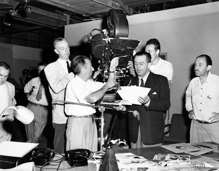テレビ番組の撮影準備をするウォルト・ディズニー氏