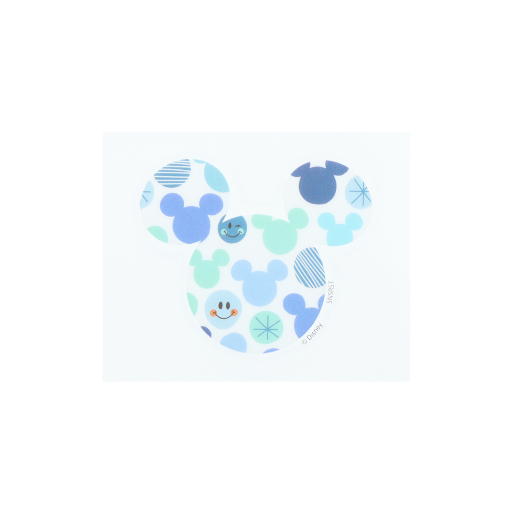 ブルーやグリーンのミッキーシルエットに、スマイルマークがアクセント。