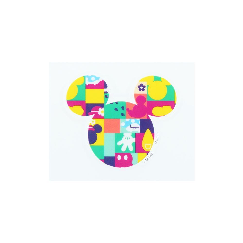 ミッキーシルエットに、カラフルなタイルを敷き詰めたようなステッカー。