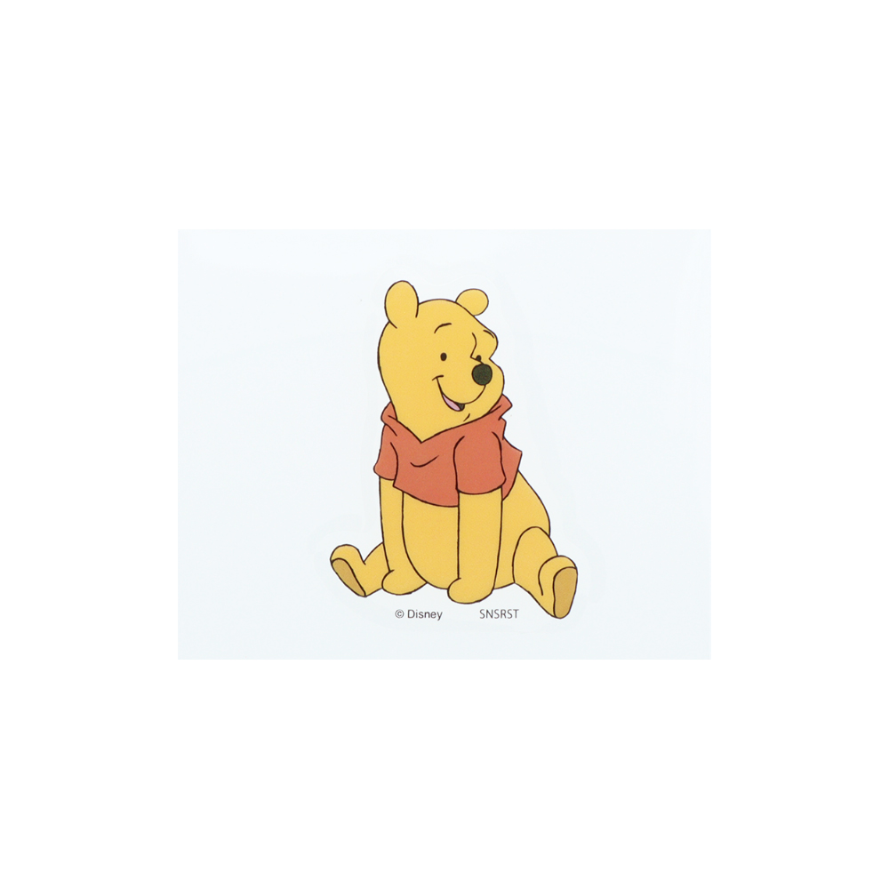 座ったポーズで横を見る「くまのプーさん」の、キュートなダイカットステッカー。