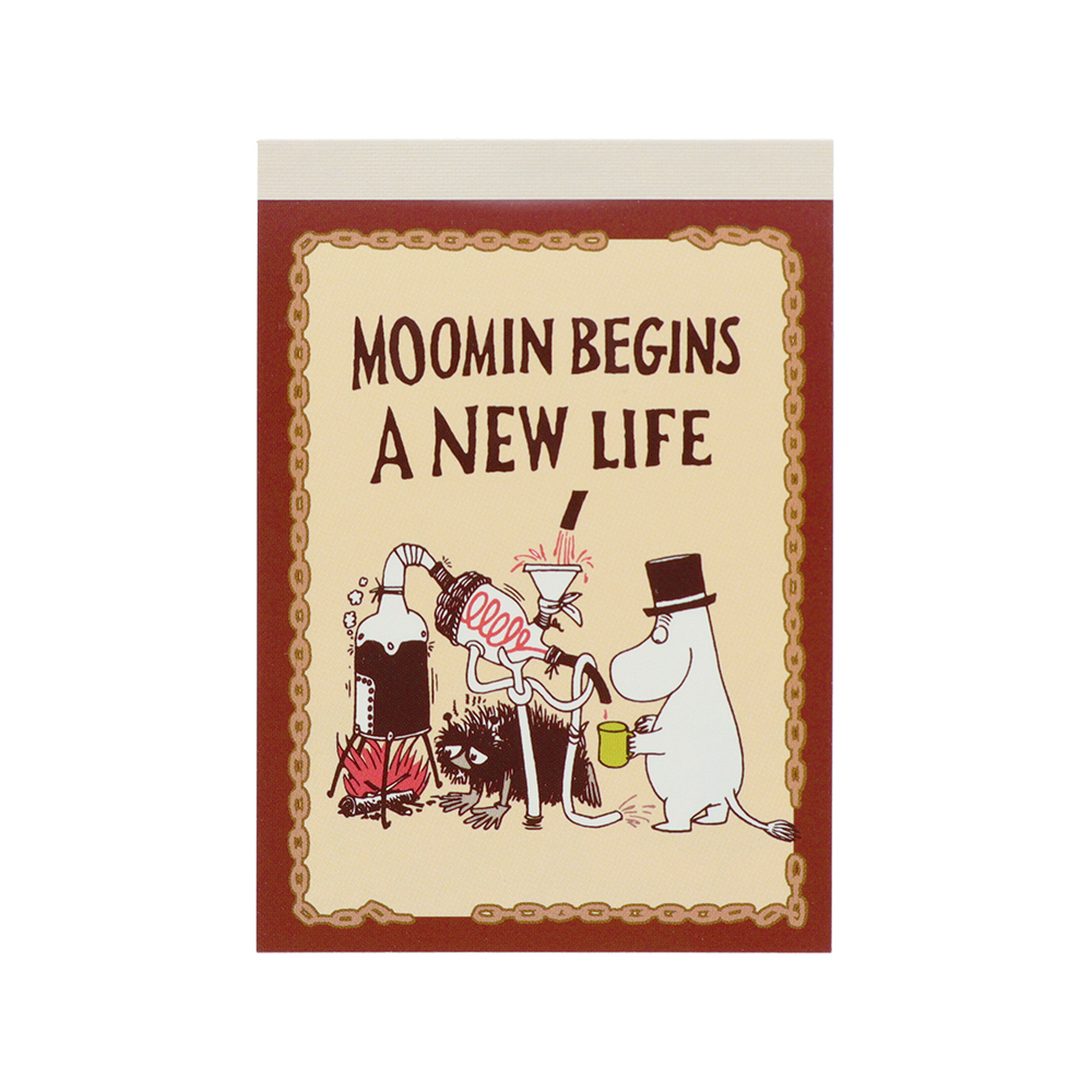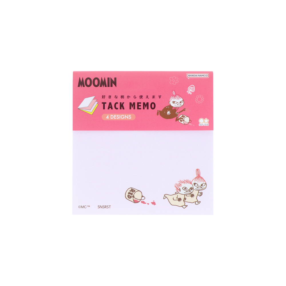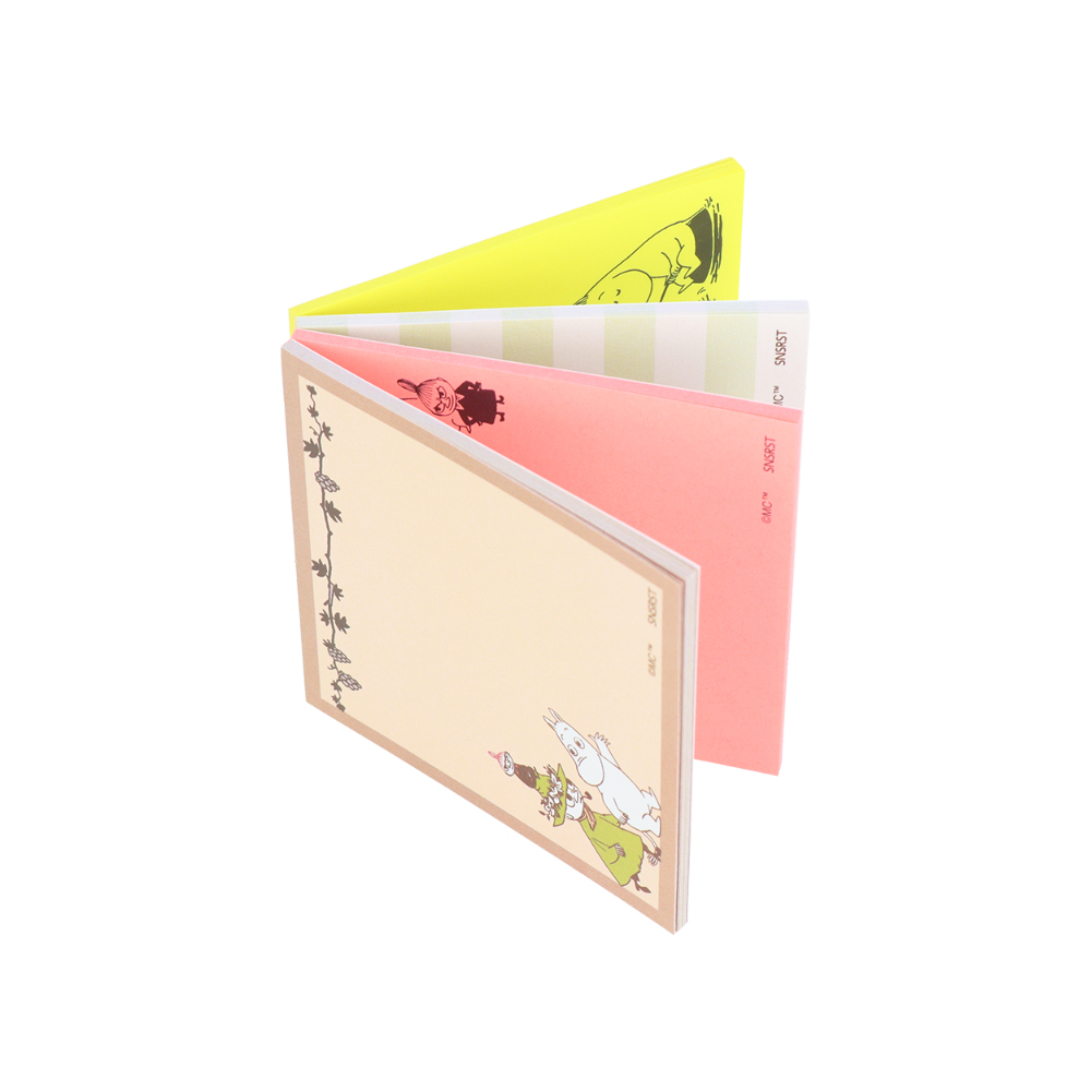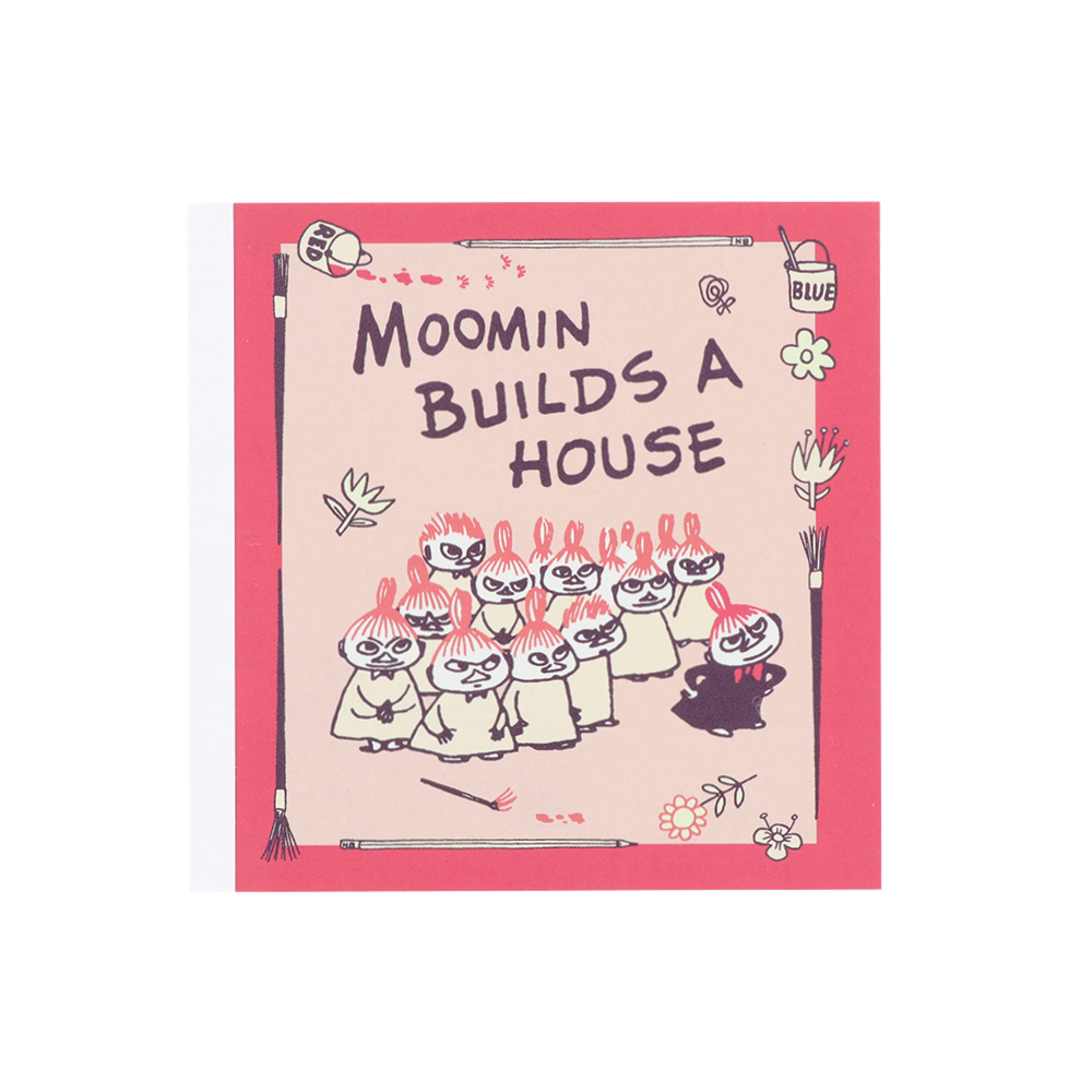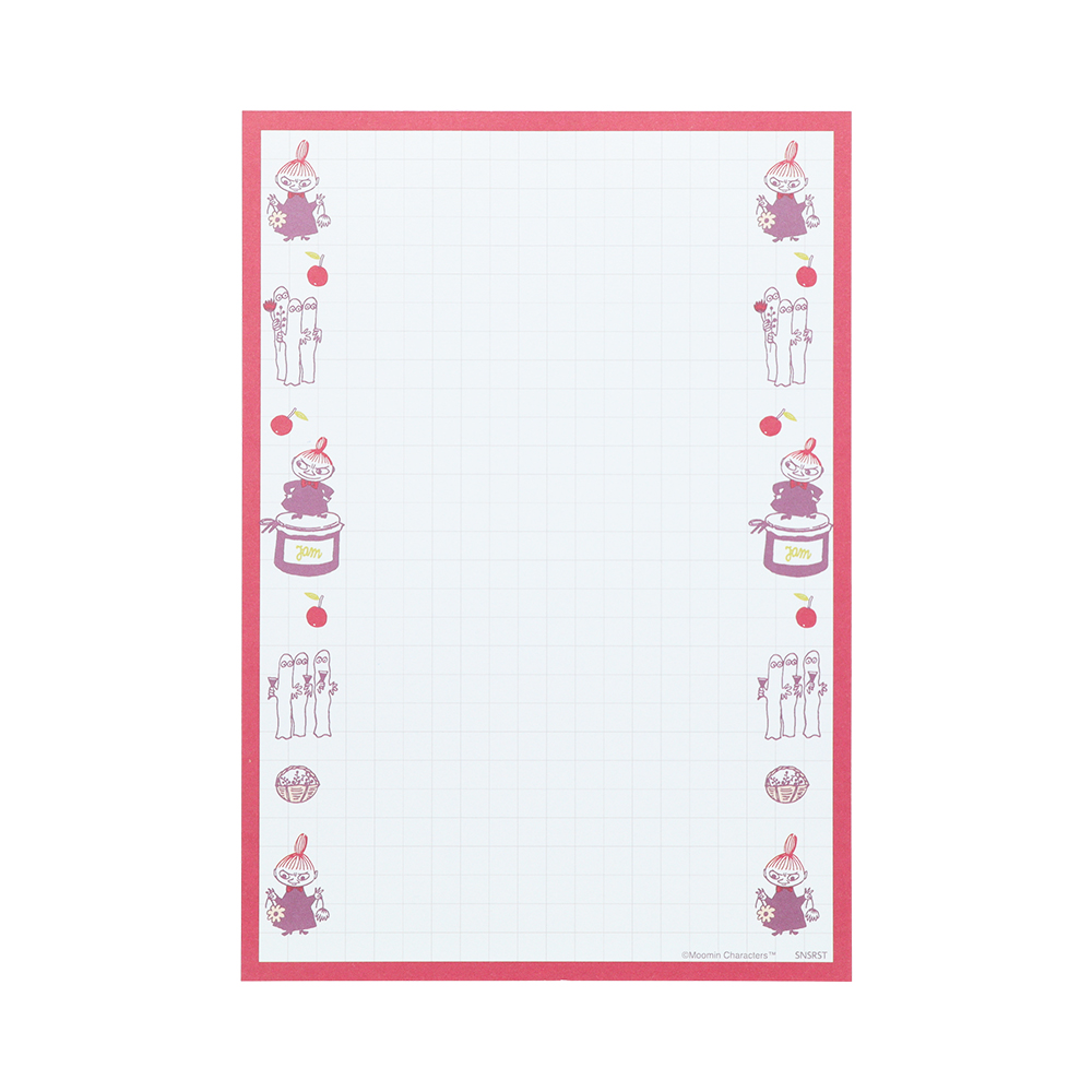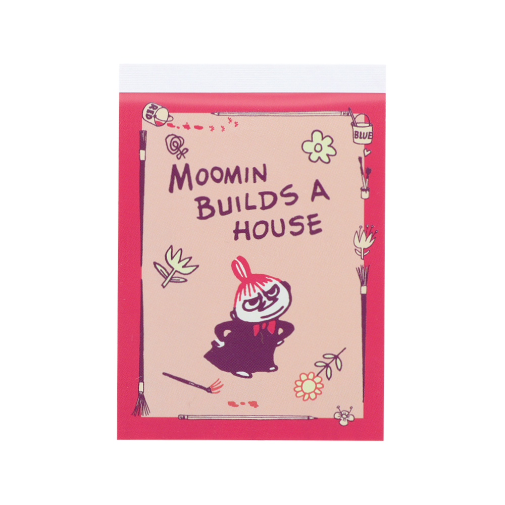 ピンクで縁取り、木の実や「リトルミイ」「ニョロニョロ」のイラストをあしらったB6メモも可愛いデザインです。