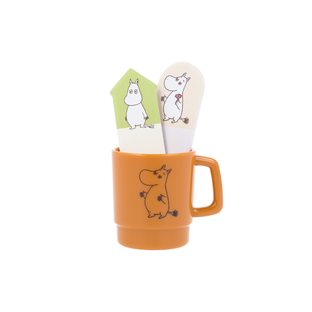 明るいブラウンのカップケースに入った「ムーミン」のダイカット付箋。
