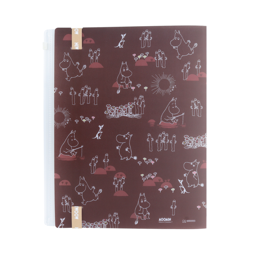 バインダーは濃いめのブラウンで、「ムーミン」や「ニョロニョロ」のラインアートを使った総柄デザインです☆