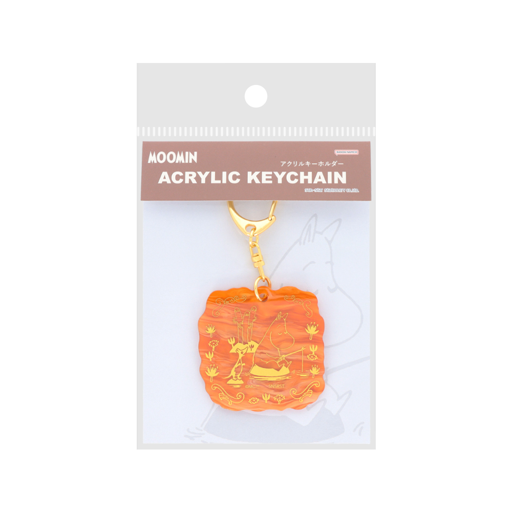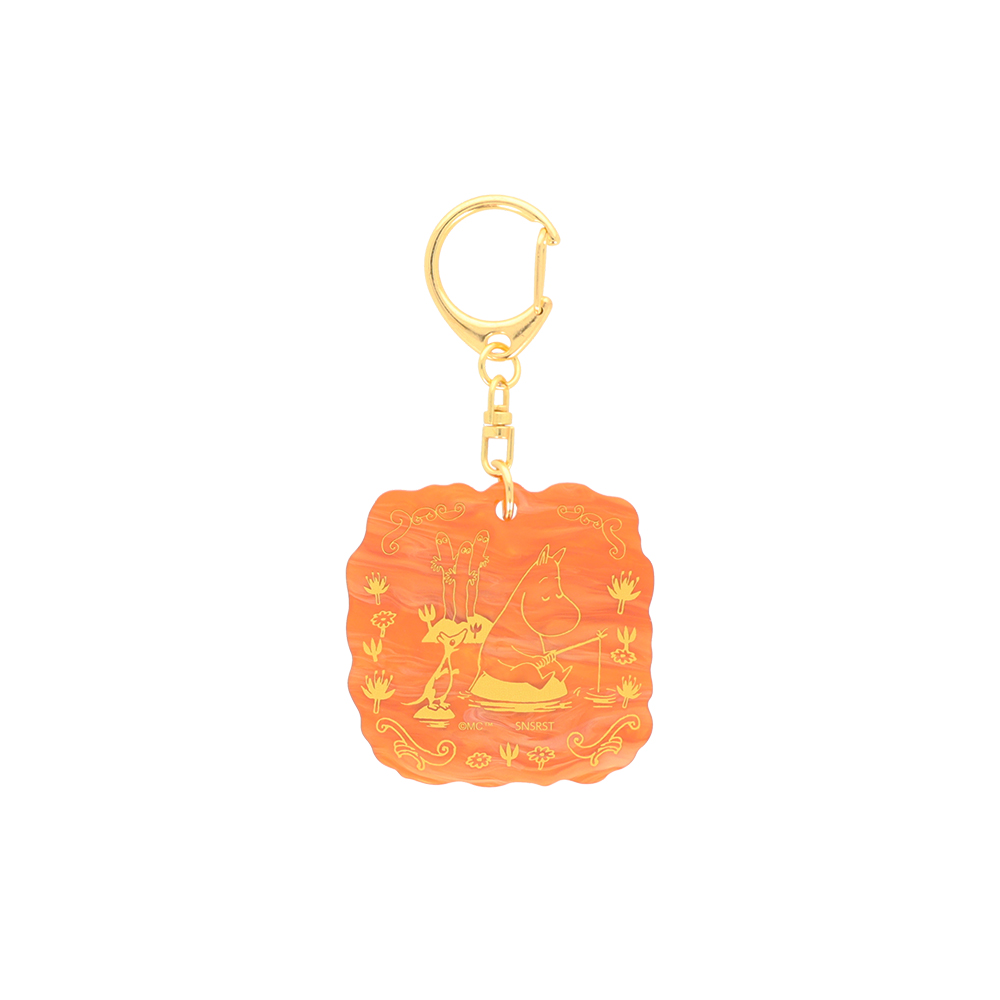 べっ甲風のテクスチャが高級感ある、「ムーミン」デザインのアクリルキーホルダー。