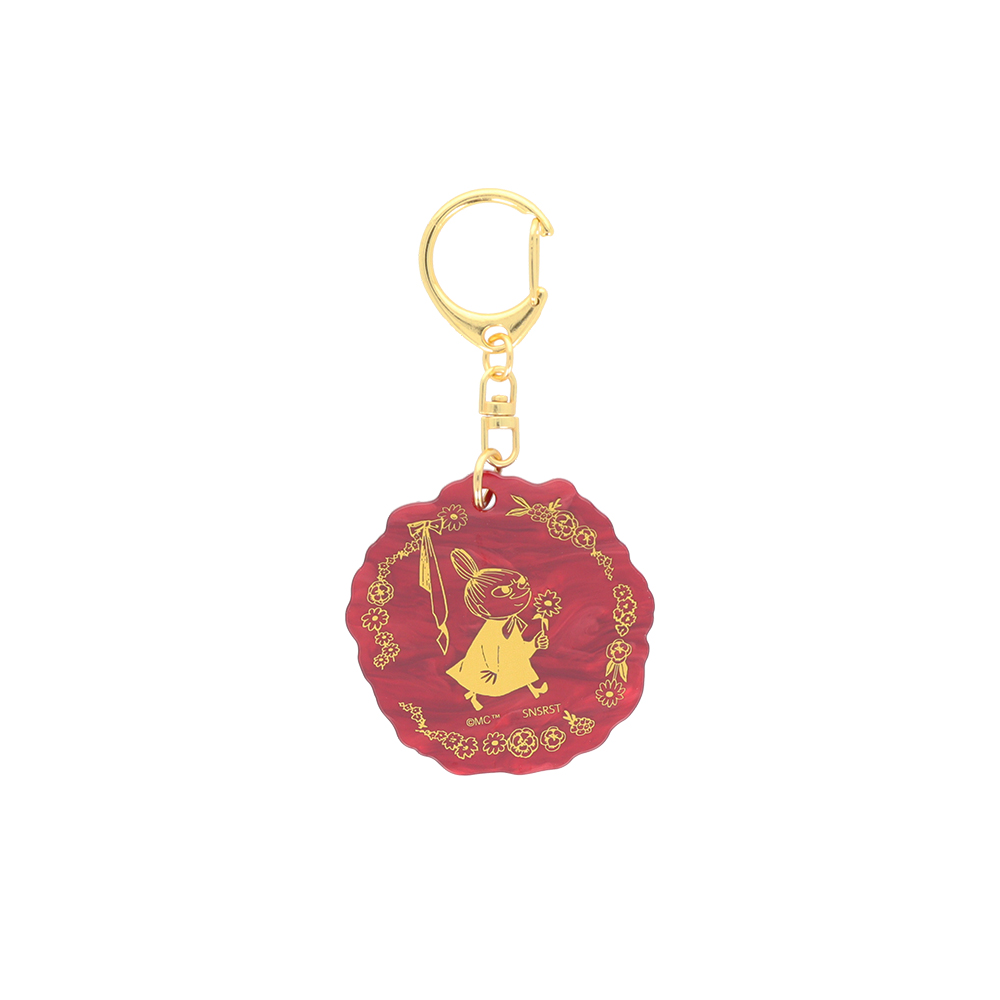 「リトルミイ」のべっ甲風アクリルキーホルダーは、赤みを帯びたカラー。