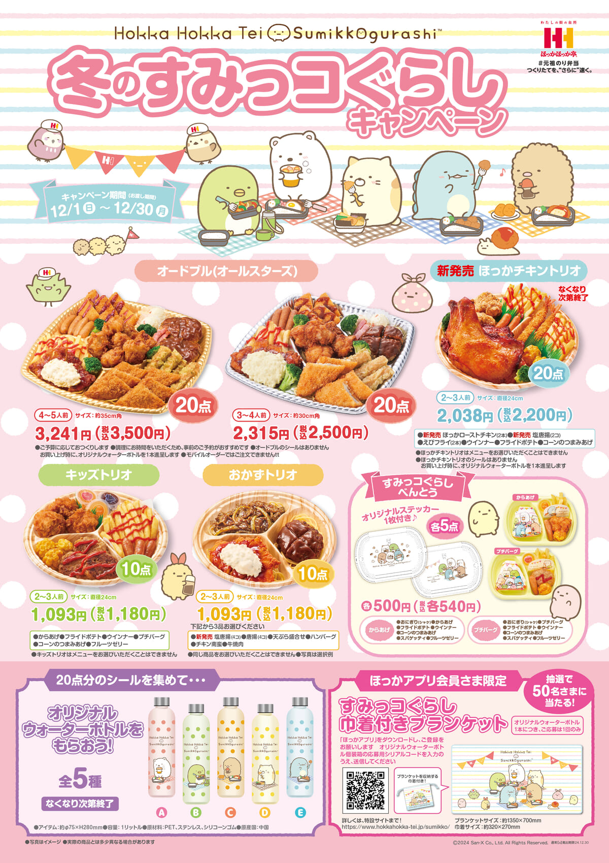 ほっかほっか亭の「冬のすみっコぐらし キャンペーン」は、2024年12月1日(日)から30日(月)までの期間限定で開催です。