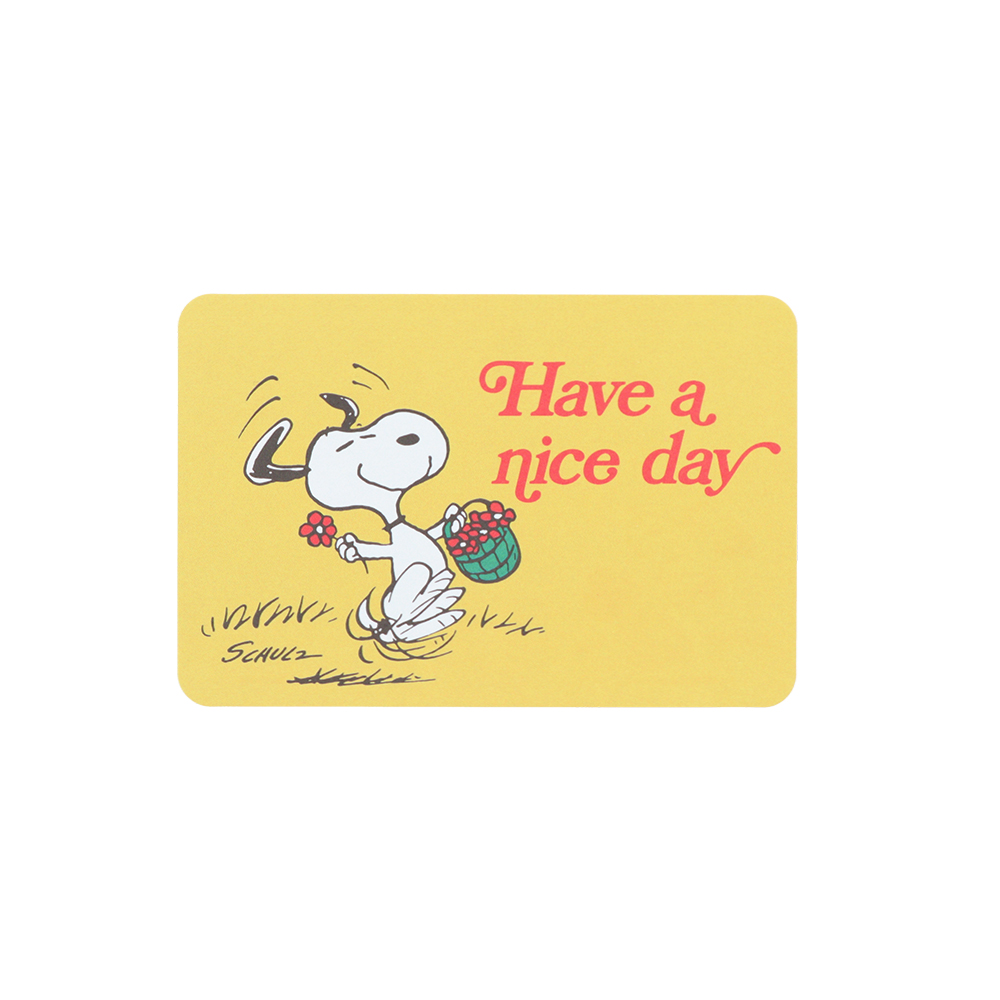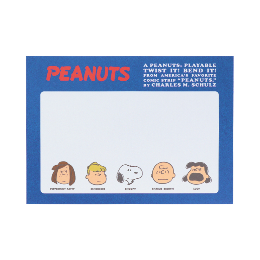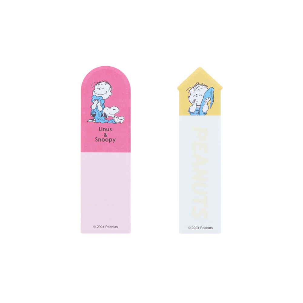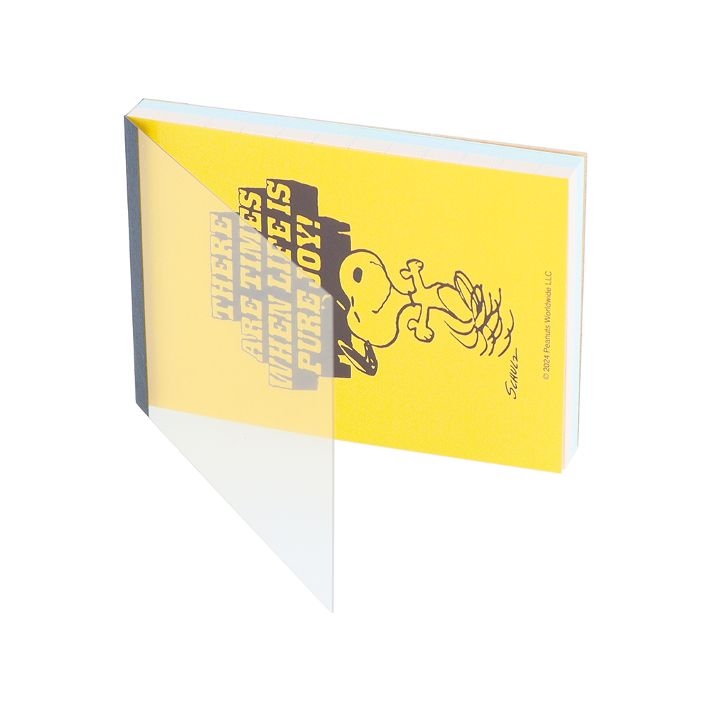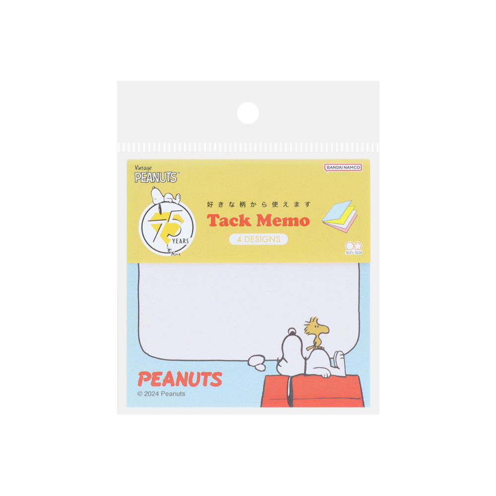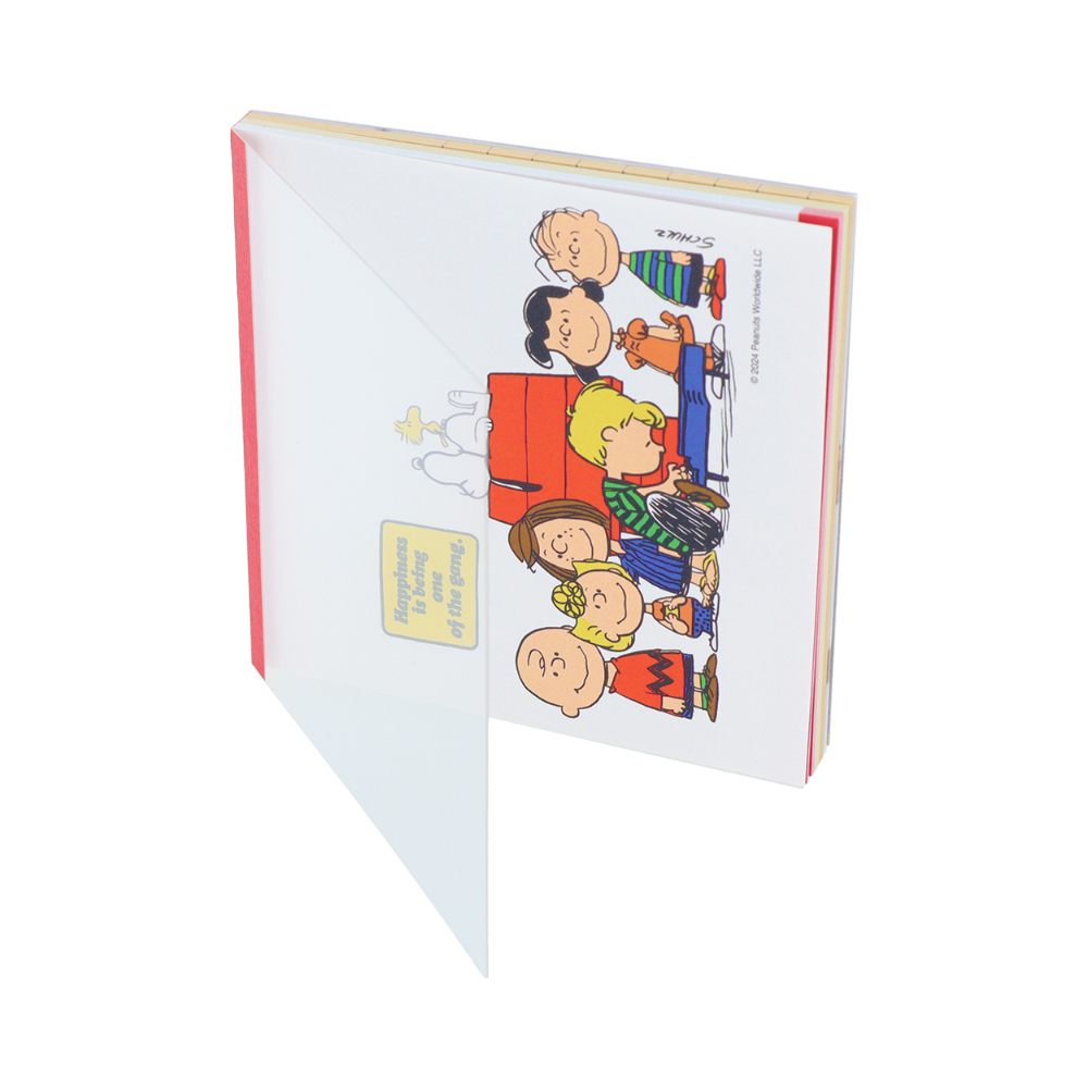 屋根型にカットされた付箋にレイアウトされた『PEANUTS』のロゴもポイントです。