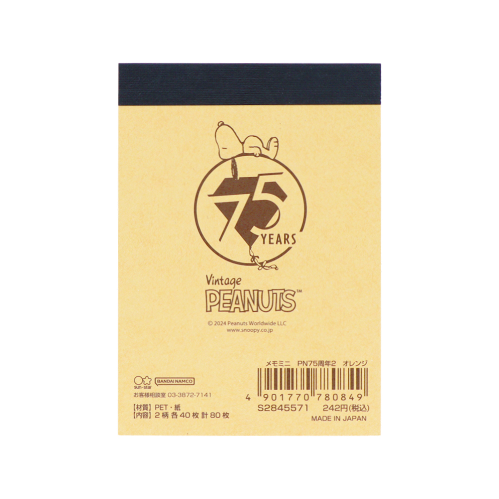 裏表紙には、75周年のロゴとその上で寝る「スヌーピー」がデザインされています☆