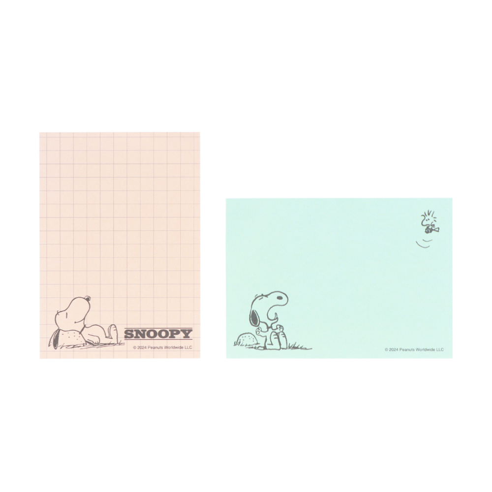 睡眠中の「スヌーピー」が描かれた方眼メモと、眠りから覚めて大あくびをしている「スヌーピー」が描かれた横向きのメモの2種類を収録。