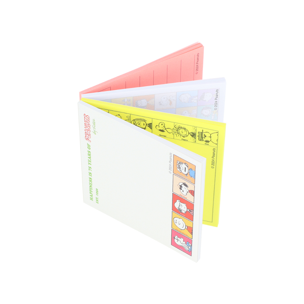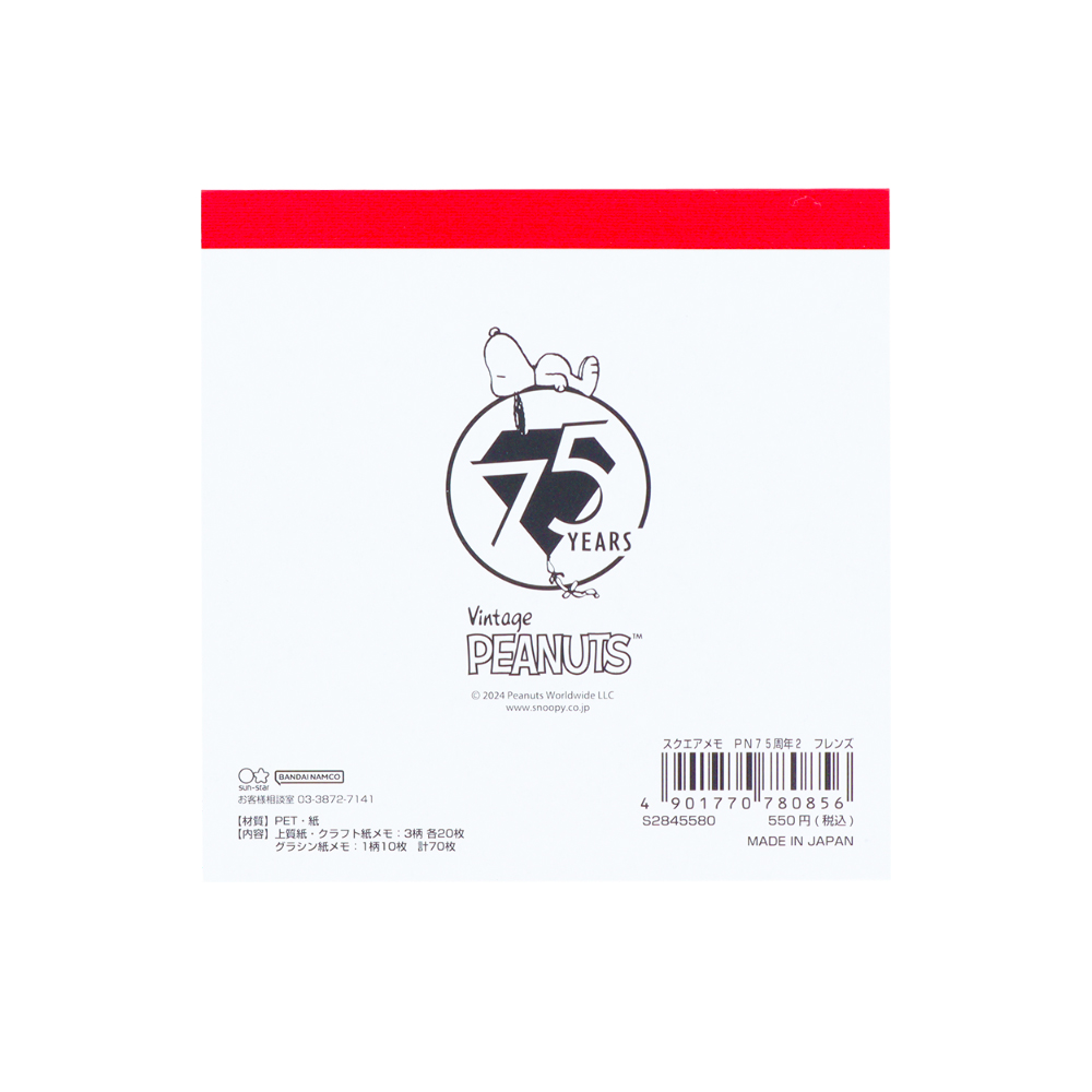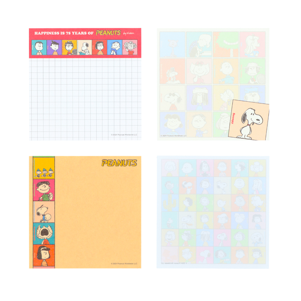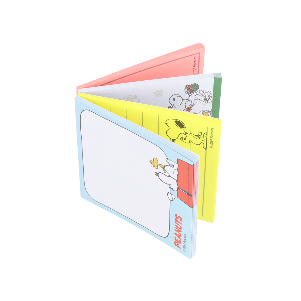 「スヌーピー」や「チャーリー・ブラウン」など、お友だちが集まった、集合写真のような「フレンズ」デザインのスクエアメモ。