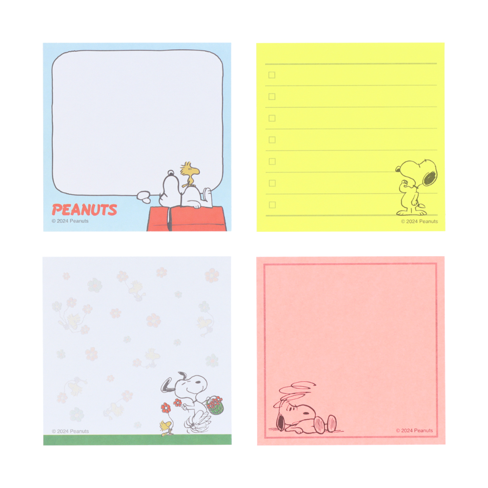 その他、ToDoリストに便利な傾向イエローの柄、お花をかご一杯に入れて嬉しそうに走る「スヌーピー」の柄、さらにポップな傾向ピンクの柄の4種類の付箋が綴られています。