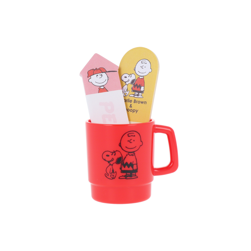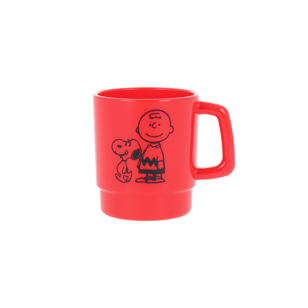存在感抜群な真っ赤なカップに入った「チャーリー・ブラウン」柄。