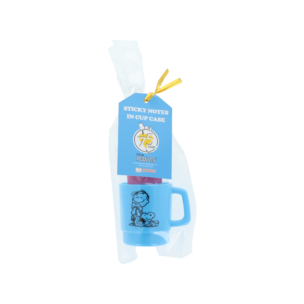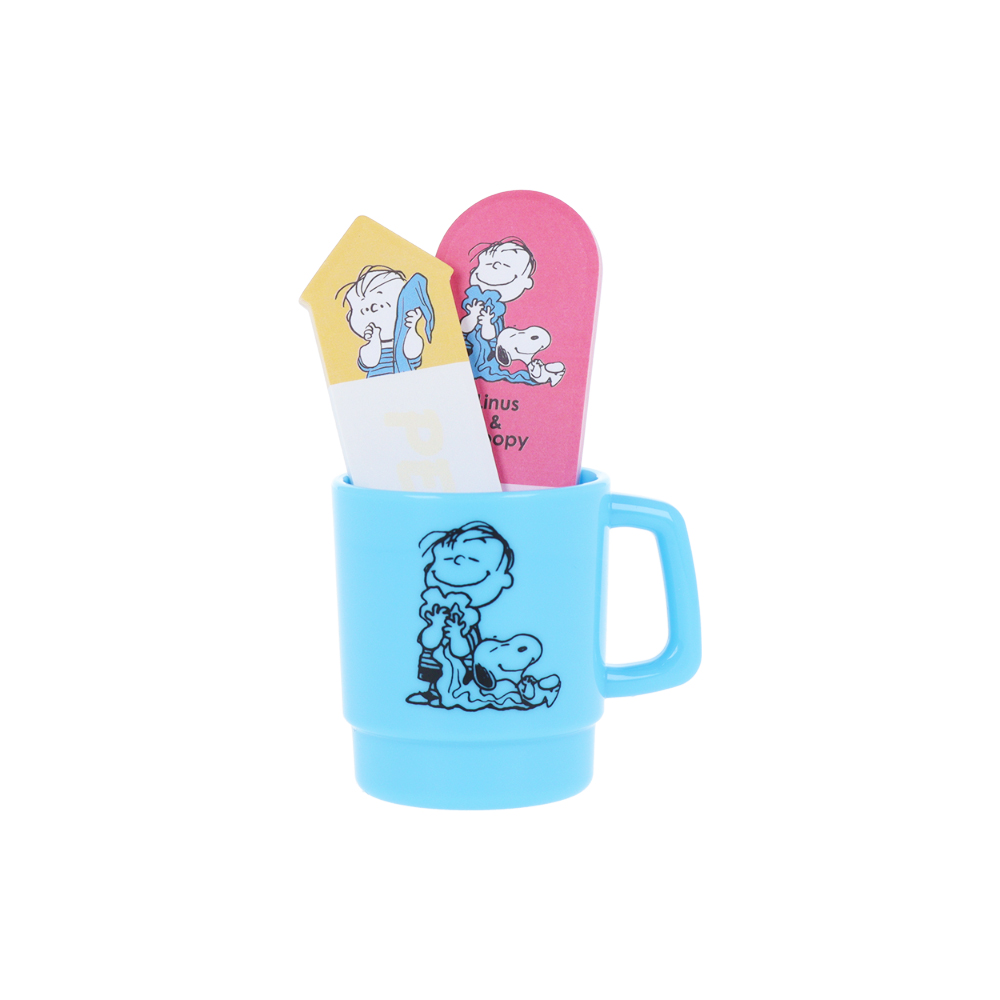 お気に入りの毛布をぎゅっと抱きしめる「ライナス」をデザインしたカップケース入付箋。