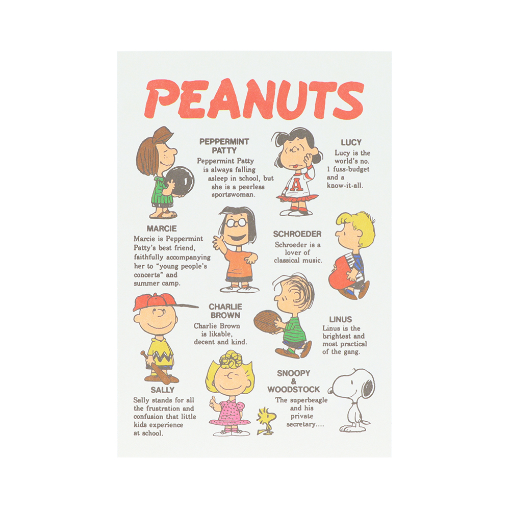 『PEANUTS』の仲間たちをプロフィールと共に描いた便箋には、