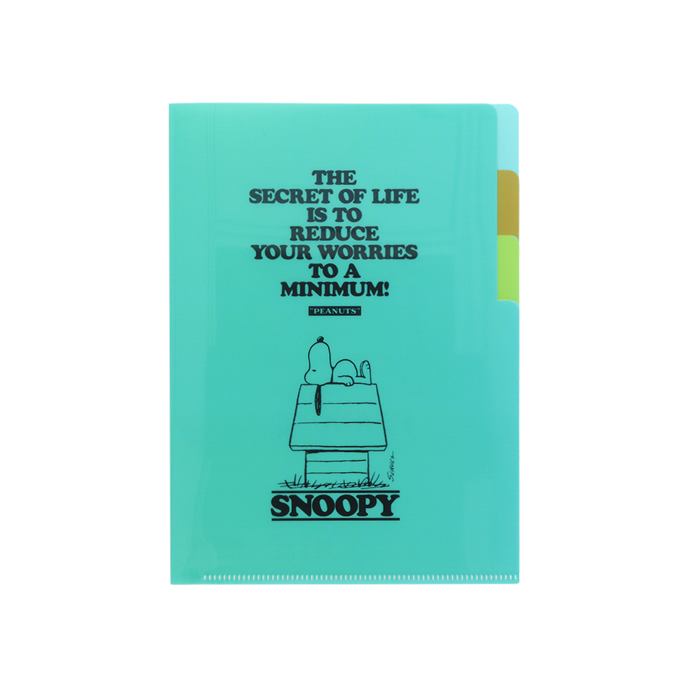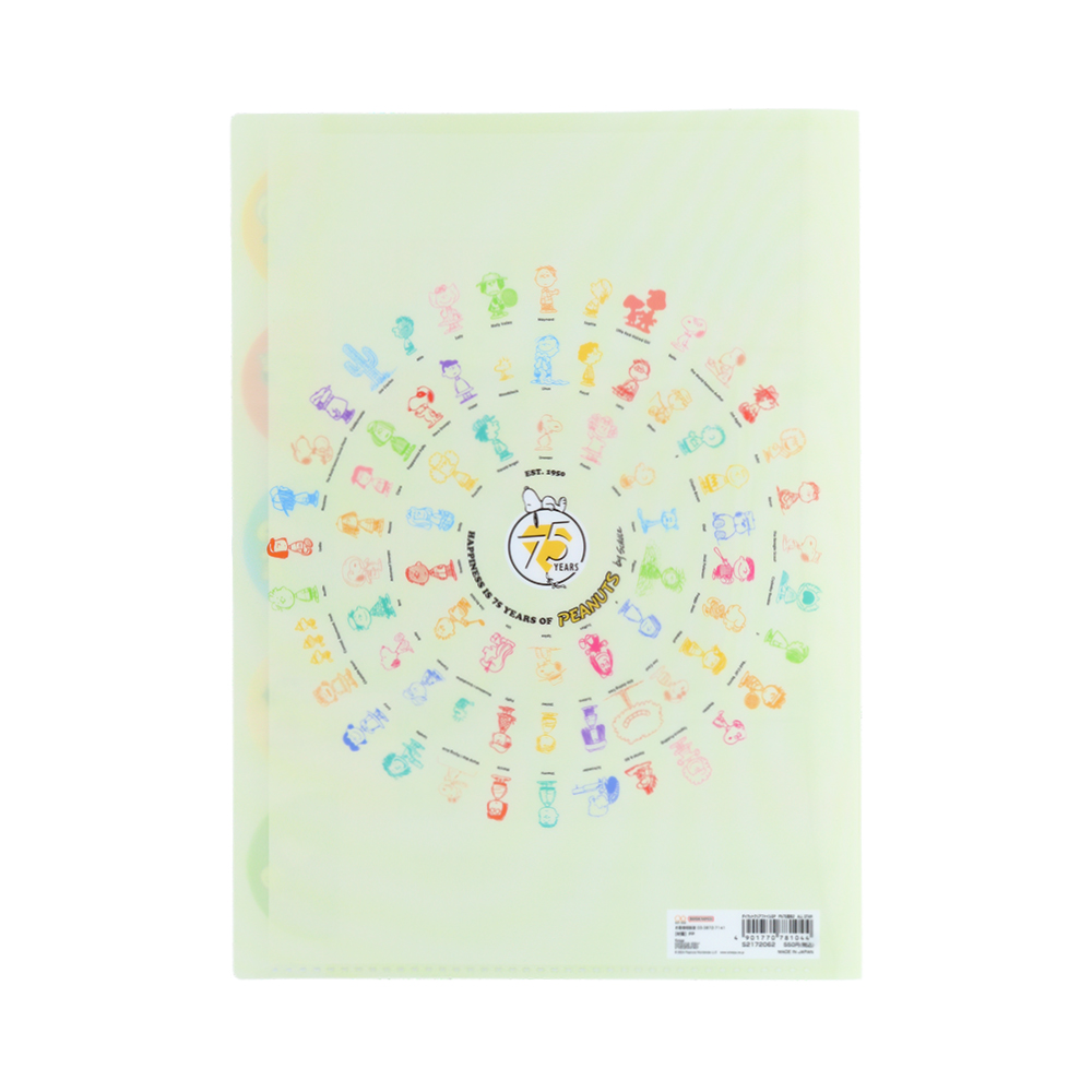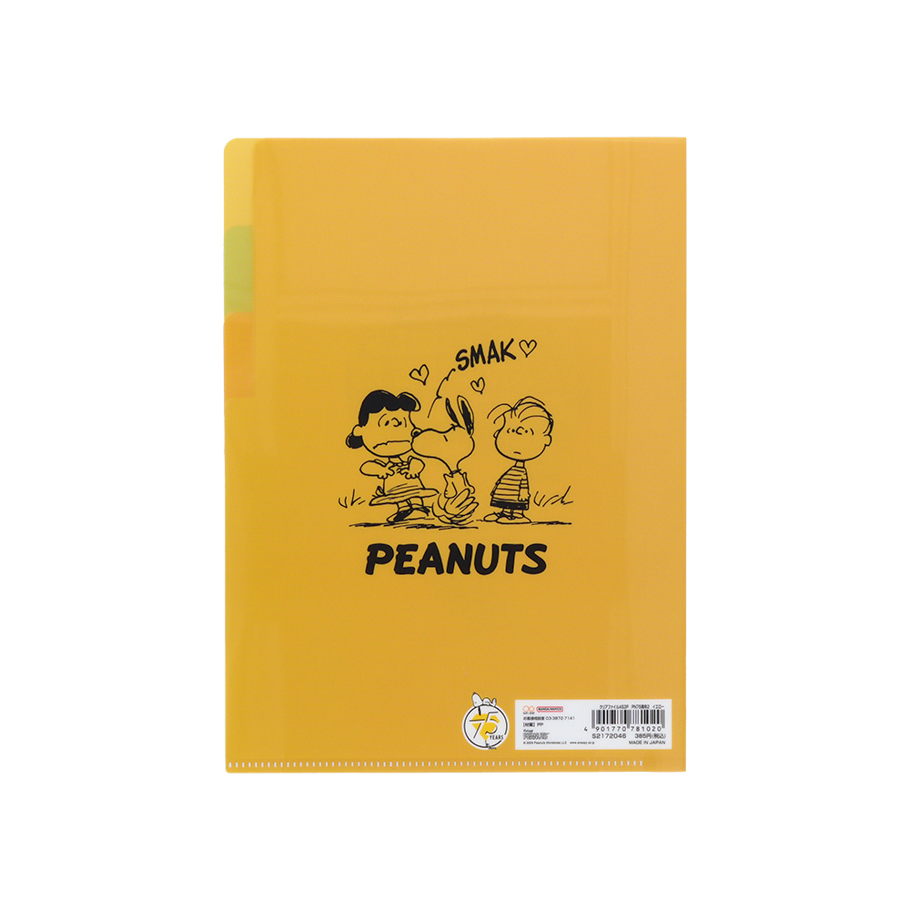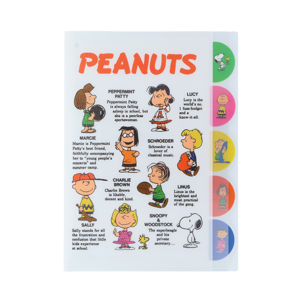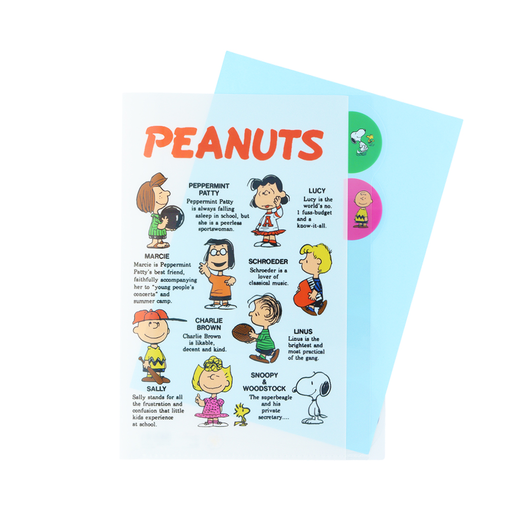 クリアホワイトを基調にしたクリアファイルに『PEANUTS』の仲間たちを描いたフレンズ。
