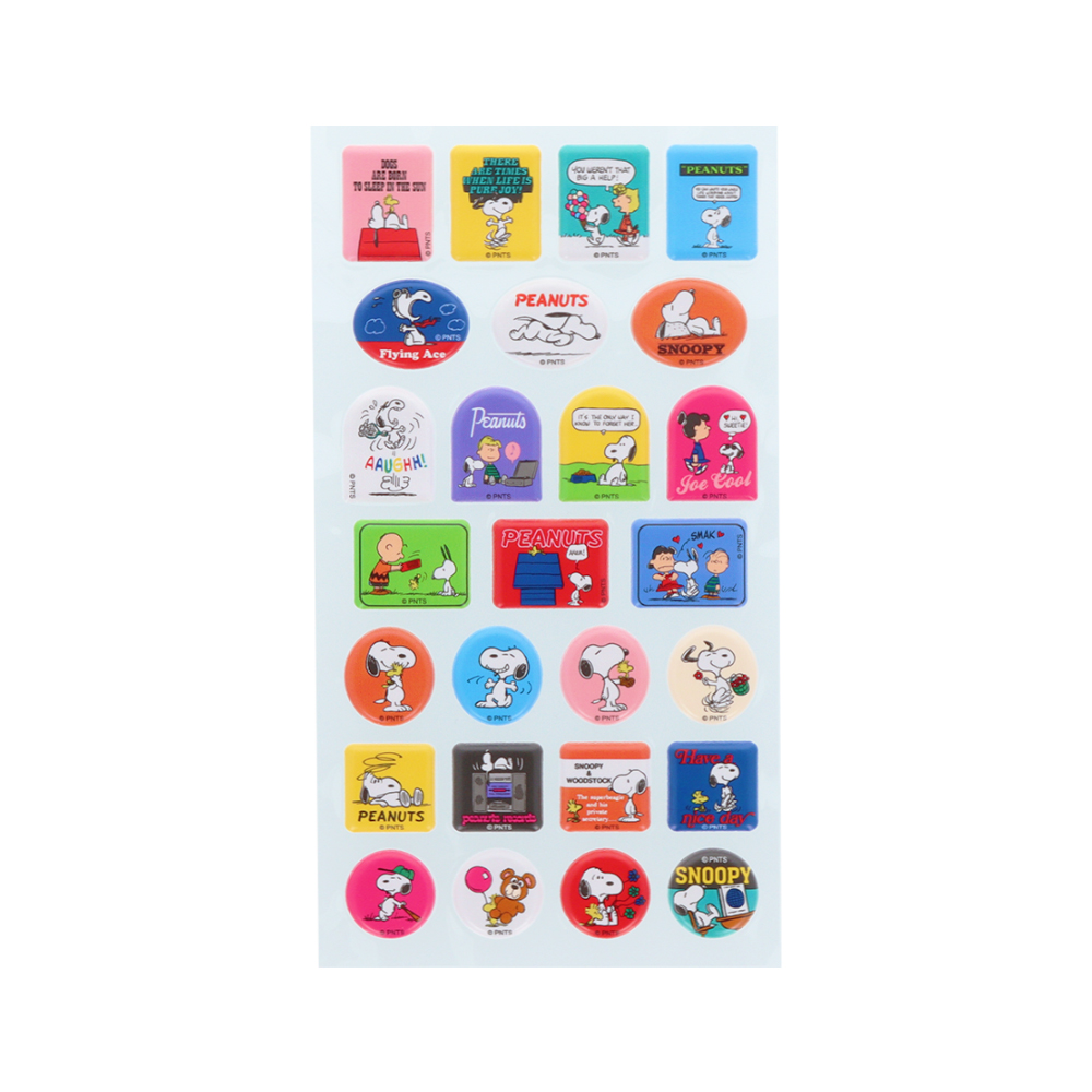 バッジ風にデザインされた「スヌーピー」や「ウッドストック」「チャーリー・ブラウン」「ライナス」柄がアソートされています。