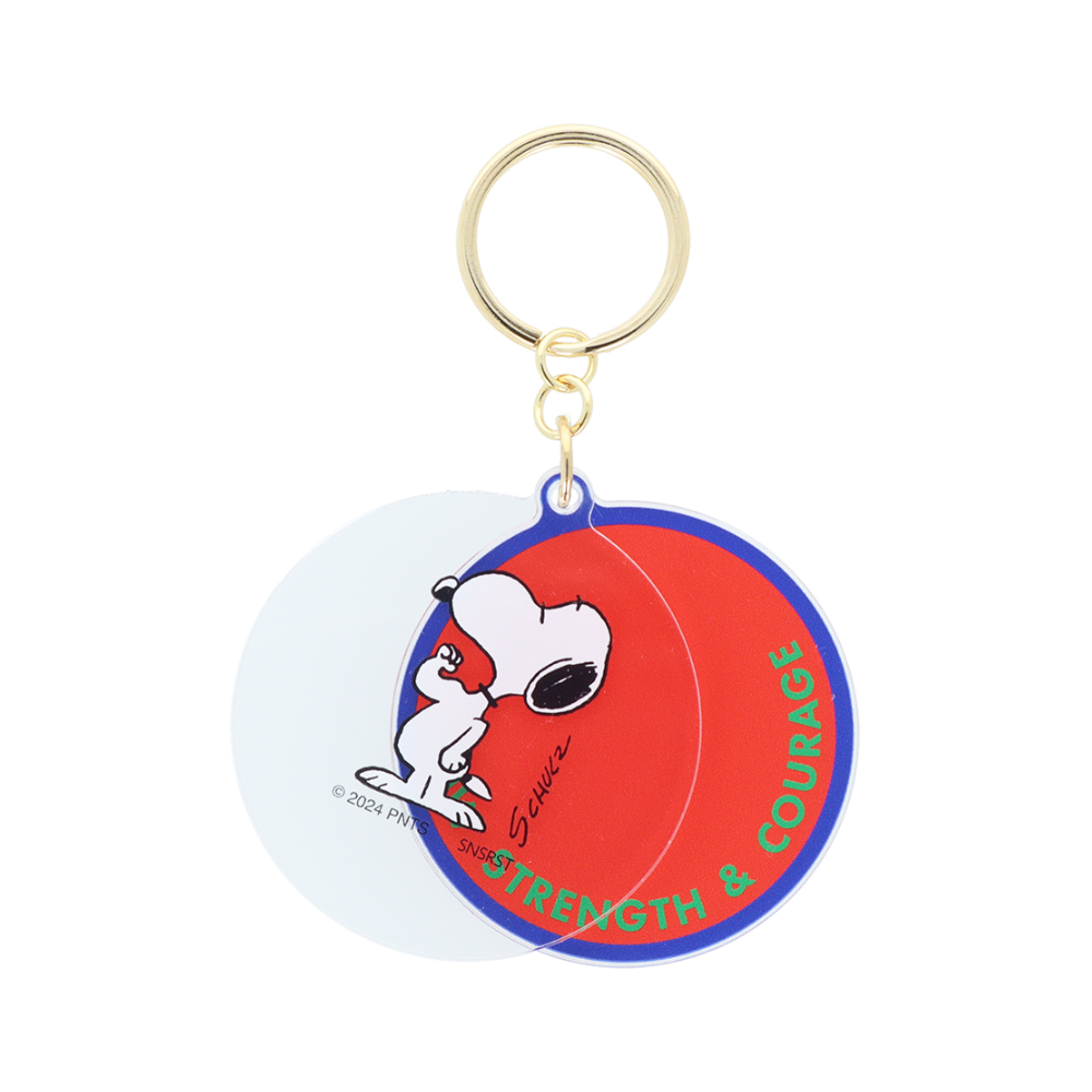 腕に力を込める「スヌーピー」を描いたクリアパーツと、