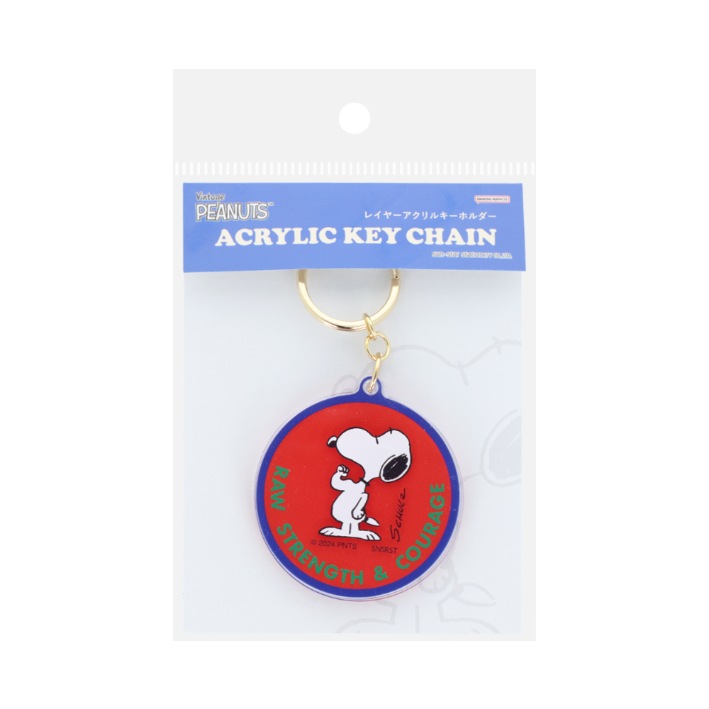 デザインとロゴの2層に重なったレイヤーアクリルキーホルダー。