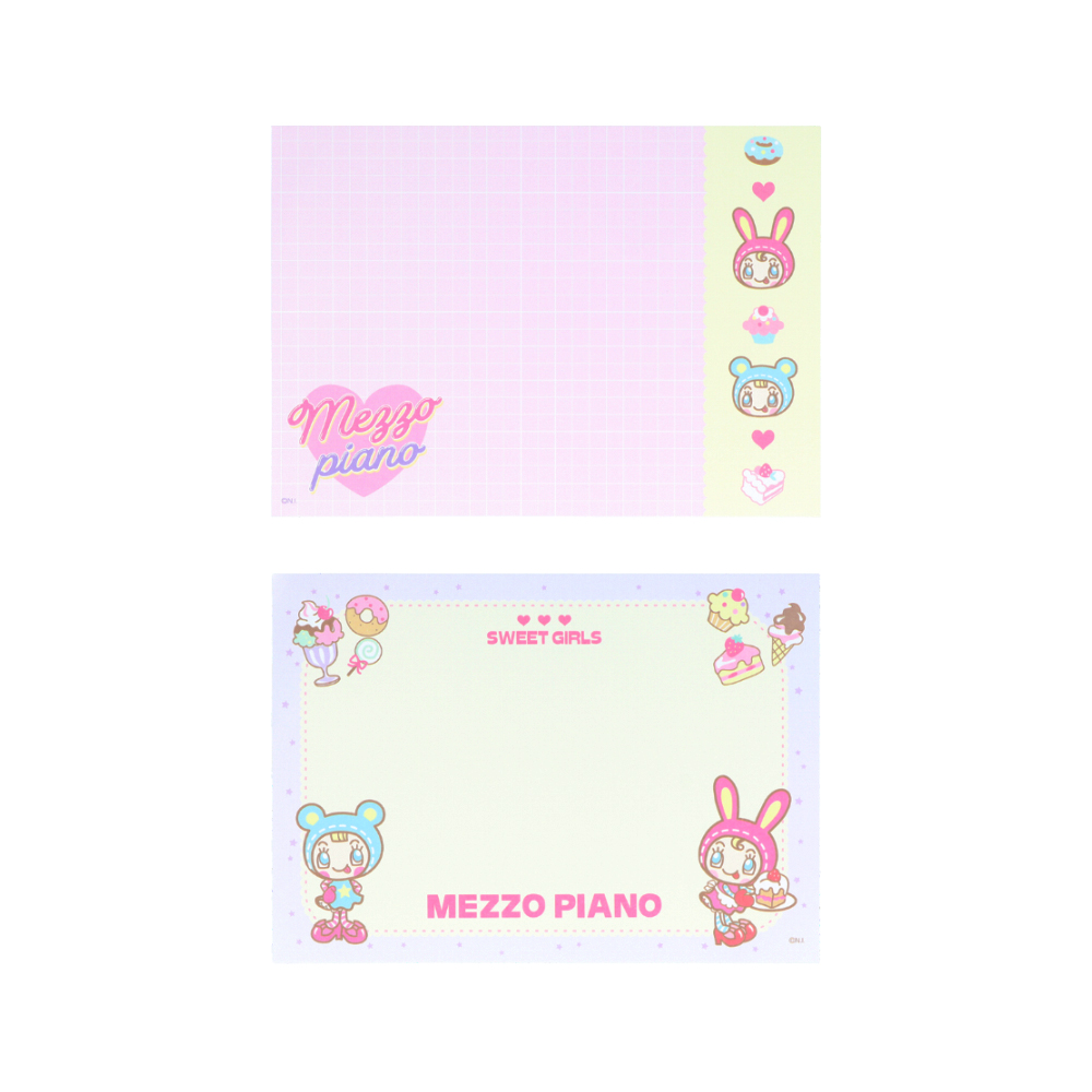 「メゾピアノ ジュニア」の便箋と封筒は、ピンクや淡いパープル、ブルーなどが基調。